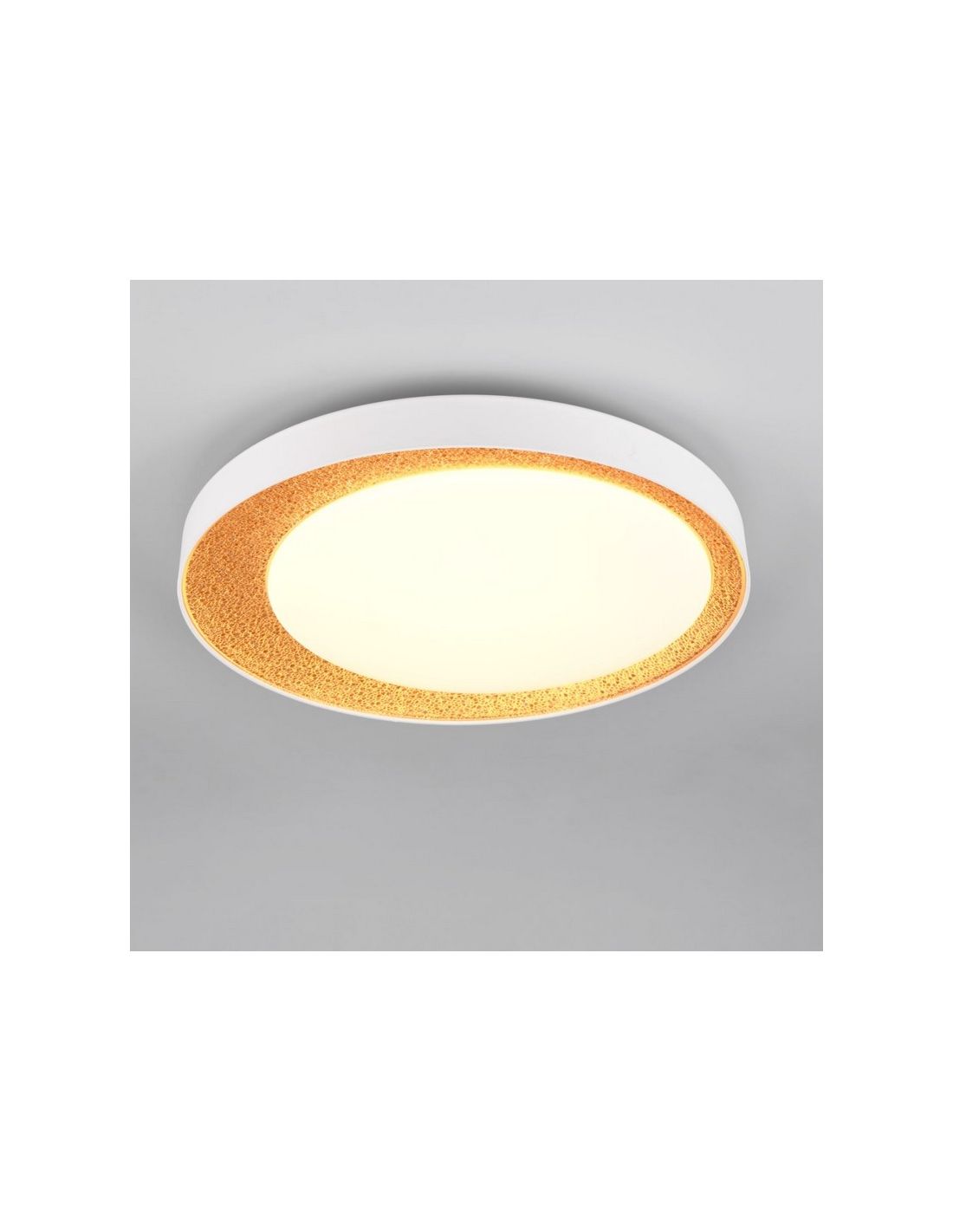 Die Deckenlampe LED ALETA ist eine moderne und funktionale Beleuchtungslösung. Mit ihrem weiß-goldenen Finish und einem Durchmesser von 45 cm integriert sich diese Lampe perfekt in jeden Raum und verleiht Eleganz und Raffinesse. Sie bietet eine Leistung von 24W und einen Lichtstrom von 2500 Lumen, ideal zur effizienten und gleichmäßigen Beleuchtung in Wohnzimmern, Schlafzimmern und Büros.