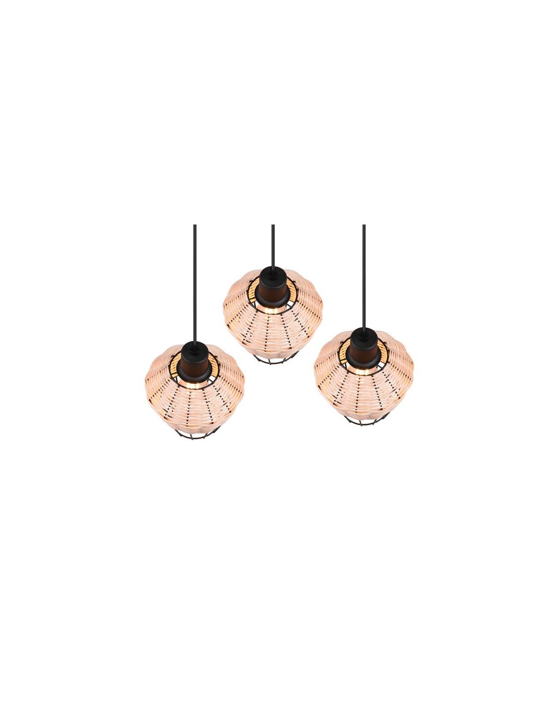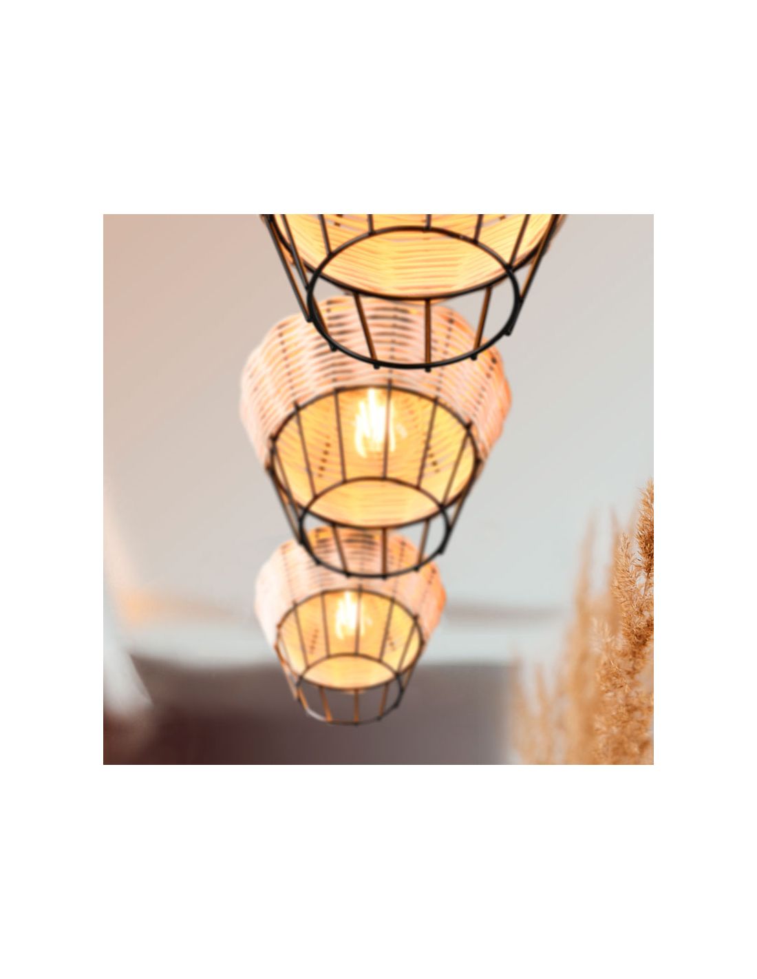 Wir präsentieren Ihnen einen eleganten und modernen Vorschlag, um Ihre Innenräume zu beleuchten: die Borka Pendelleuchte mit 3 Lichtern. Dank ihres einzigartigen und innovativen Designs, das Schwarz mit Rattan kombiniert, ist es sehr einfach, einem Raum Persönlichkeit zu verleihen, und wird somit zur perfekten Wahl.