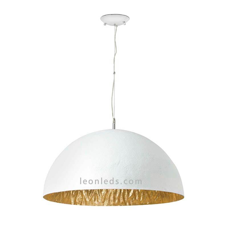 Diese Magma-Deckenlampe hat ein modernes Design und klare, avantgardistische Linien, die sie für moderne Dekorationen, industrielle und zeitgenössische Stile geeignet machen. Die Farben Weiß und Gold dieser Lampe lassen sich sehr einfach mit fast allen Farbnuancen kombinieren, dieses Format der Deckenlampe ist perfekt, um über einem Tisch oder einer Arbeitsplatte installiert zu werden. In Restaurants, Bars, Pizzerien oder Snacks kann sie über der Theke oder über jedem einzelnen Tisch installiert werden.