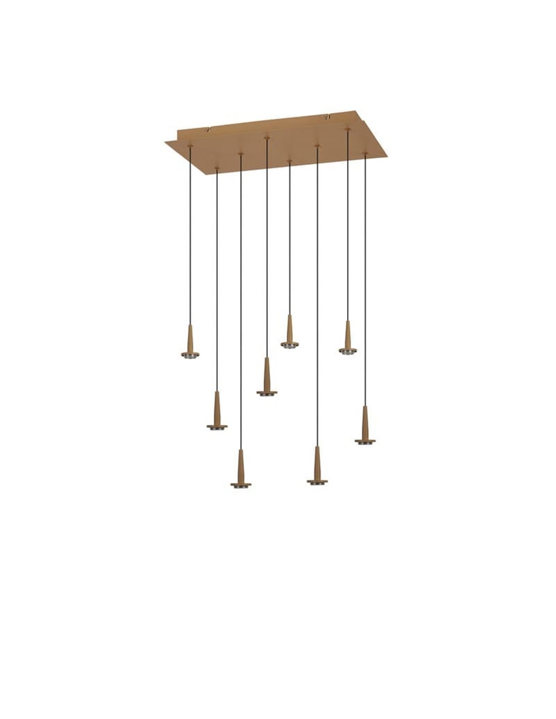 Deckenlampe mit 8 hängenden LED-Lichtern aus Kristall ANDRÓMEDA in Tropfenform, Gold 40W 3000K 4000Lm, rechteckiger Sockel. Ideal für große Räume. Jetzt kaufen bei LeonLeds.com
