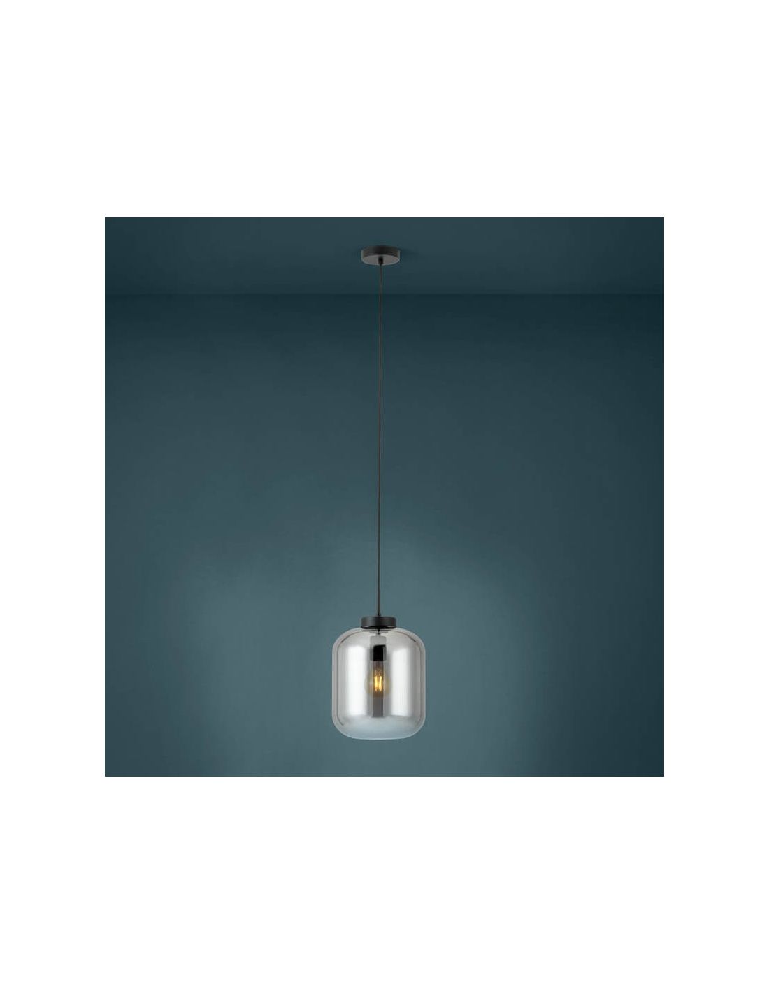 Sie funktioniert mit 1 E27-Glühbirne (Glühbirne nicht im Lieferumfang enthalten). Diese Lampe ist perfekt für den Innenbereich und besteht aus hochwertigen Materialien wie dem Glas der Lampenschirme, dem Metall des Gehäuses und dem Textilkabel, das den Bildschirm hält.