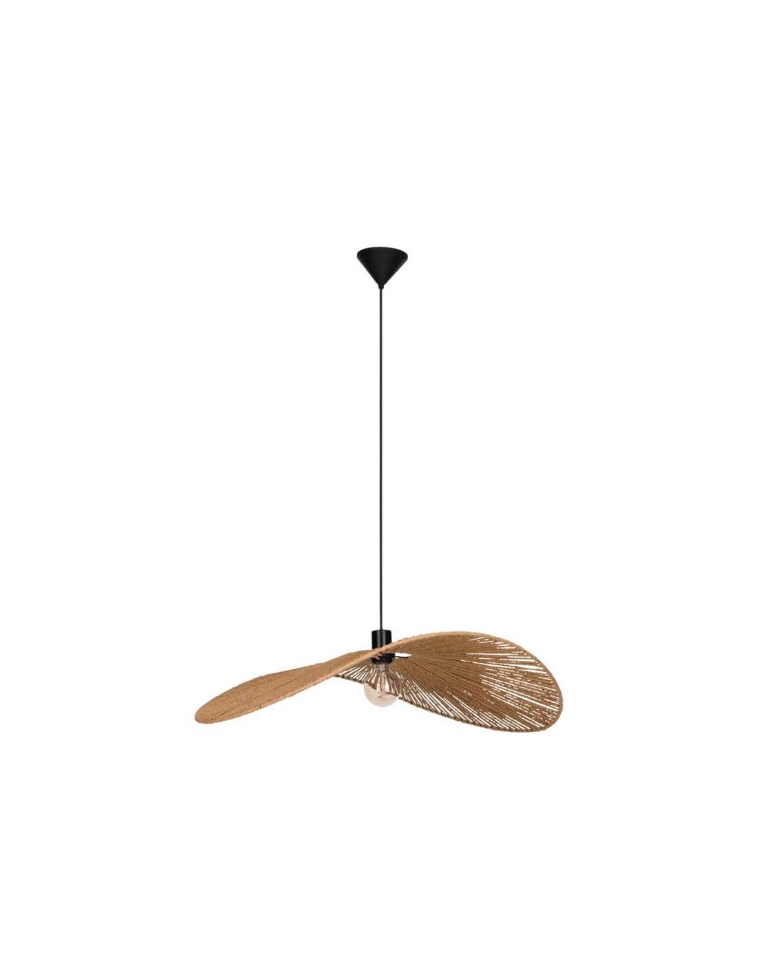 Die Deckenlampe Pamela aus der Kollektion Siruela mit einem Durchmesser von 80 cm, gefertigt aus Naturfaser und mit einer schwarzen Stahlstruktur. Ideal für die Schaffung einer gemütlichen und stilvollen Atmosphäre in jedem Raum. Kompatibel mit E27-Glühbirnen.
