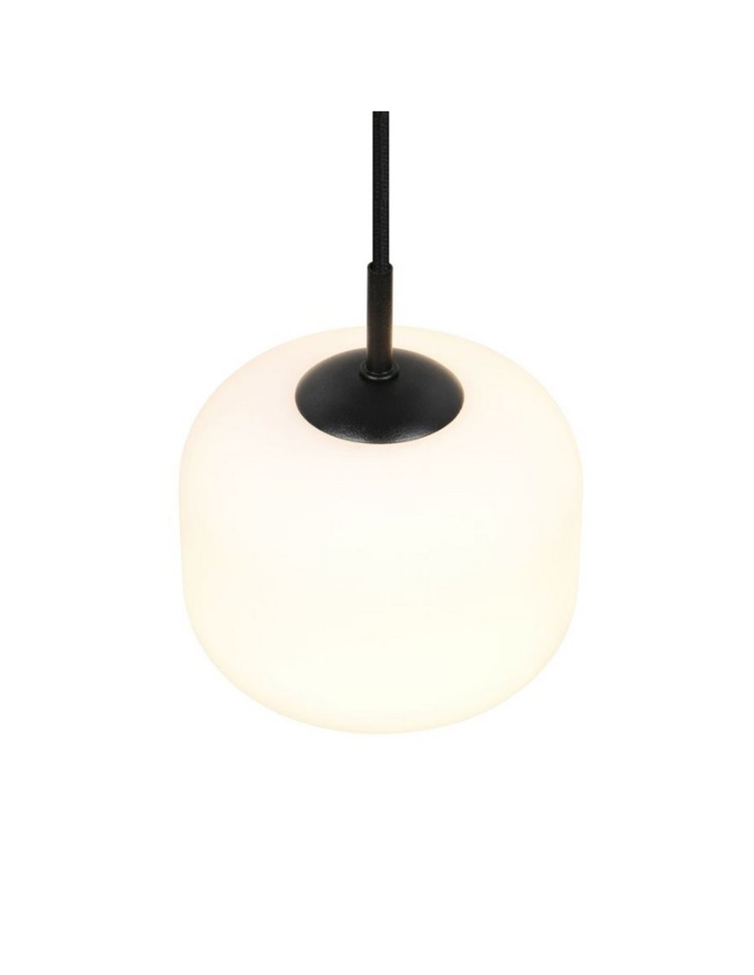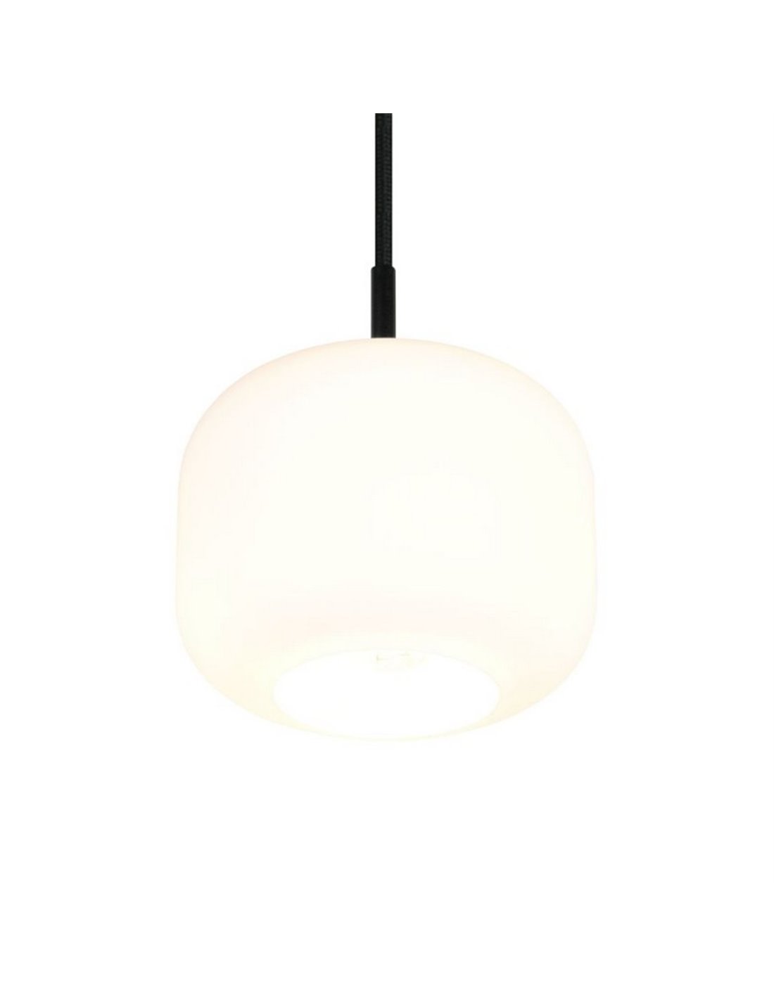 Die SIGNE Ø15 cm ist eine kompakte und elegante Pendelleuchte, entworfen, um eine diskrete dekorative Beleuchtung zu bieten. Ihre Struktur aus weißem Metall kombiniert sich mit einem weißen Glasschirm, der das Licht gleichmäßig und angenehm streut.