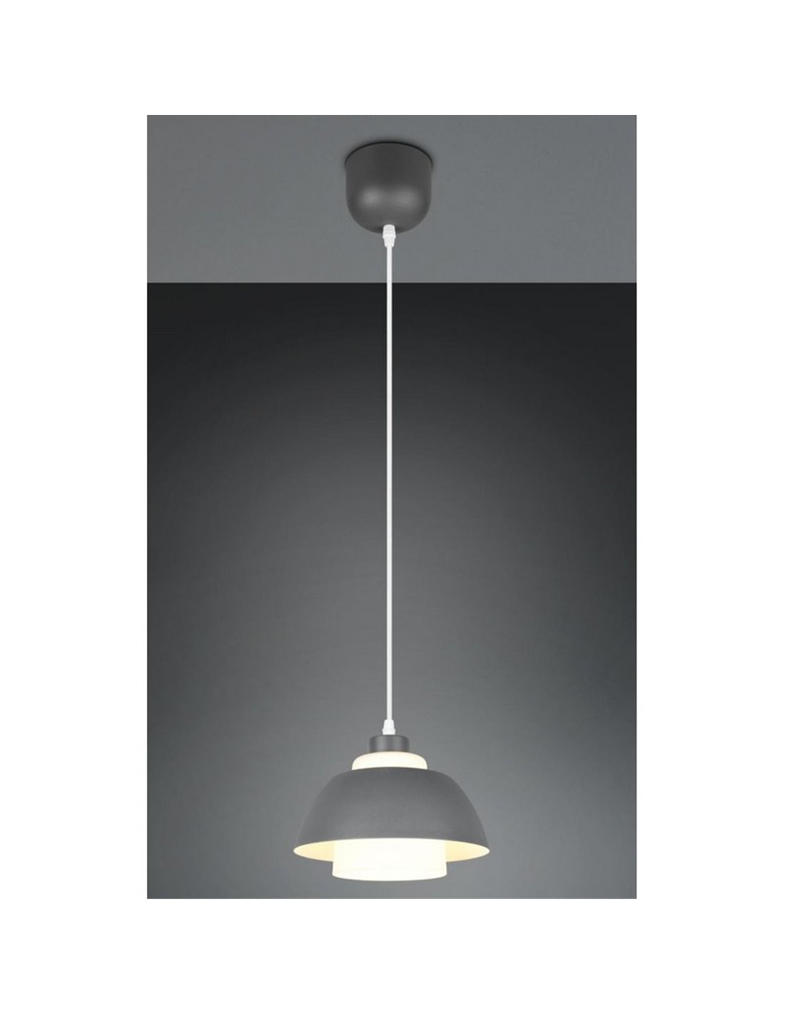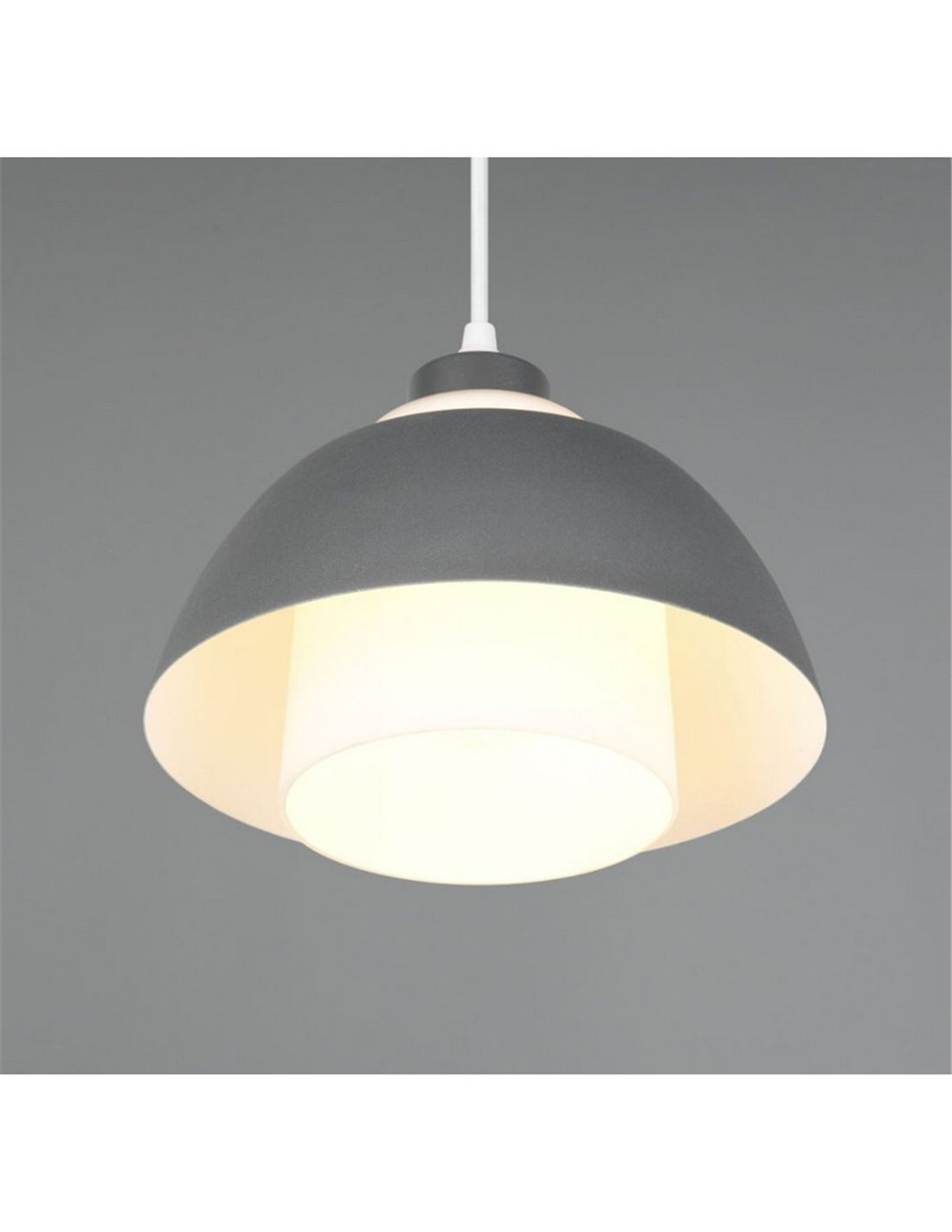 Die Pendelleuchte TILOS verfügt über eine Struktur aus schwarzem Metall, kombiniert mit einem weißen Glasschirm, der das Licht gleichmäßig und angenehm verteilt. Sie ist höhenverstellbar und für Hakenmontage an der Decke geeignet. Sie funktioniert mit 1 E27-Birne (max. 10W, nicht enthalten), ideal für Ambientebeleuchtung in Innenräumen.