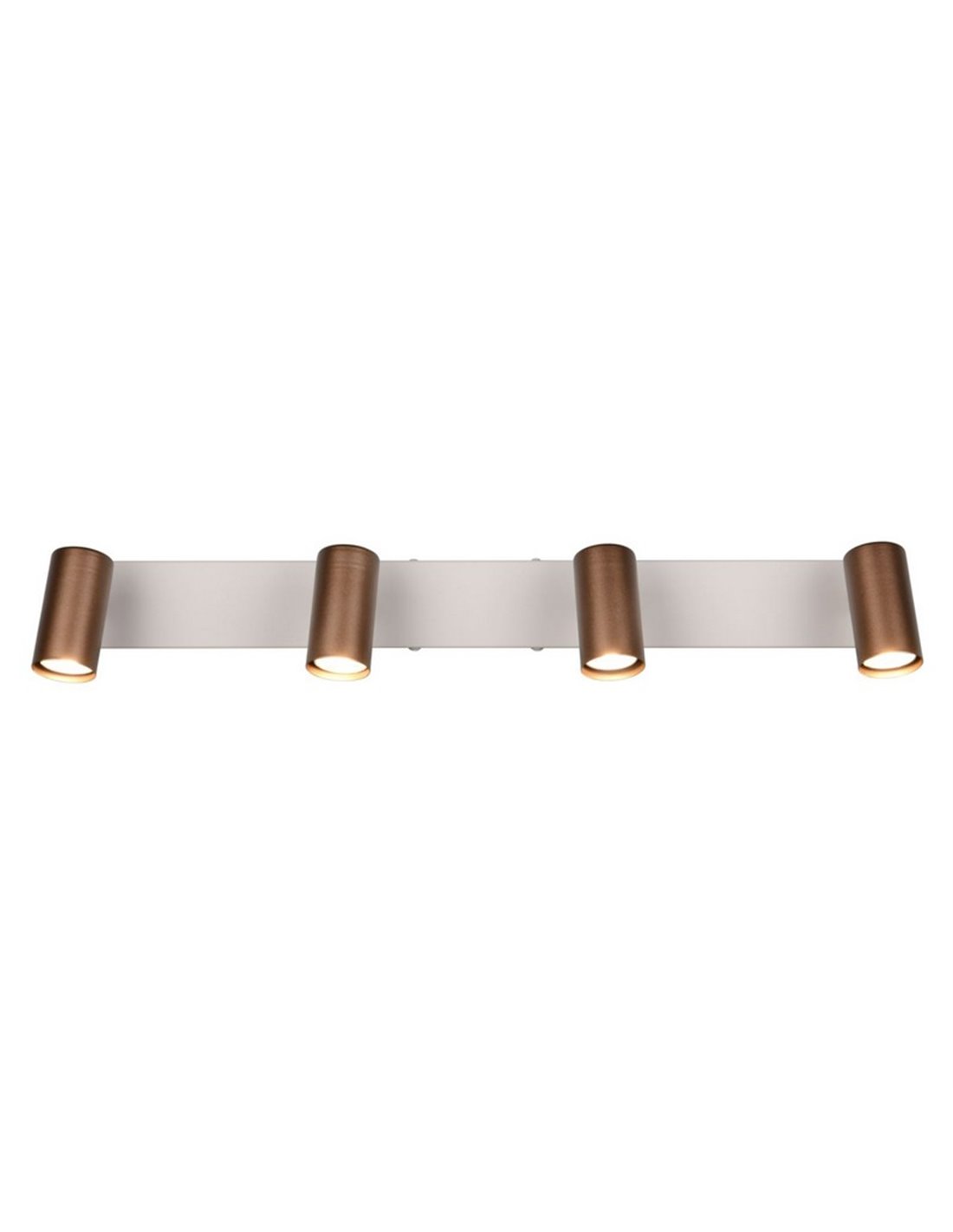Die Deckenleiste TARYN mit 4 Spots in braun liefert funktionales Licht in einem warmen Ton, der hilft, eine einladende Atmosphäre zu schaffen. Ihr langes und diskretes Design fügt sich leicht in die Decken von Fluren, Wohnzimmern oder Durchgangszonen ein und bietet eine gleichmäßig verteilte Beleuchtung dank ihrer vier Lichtpunkte.
