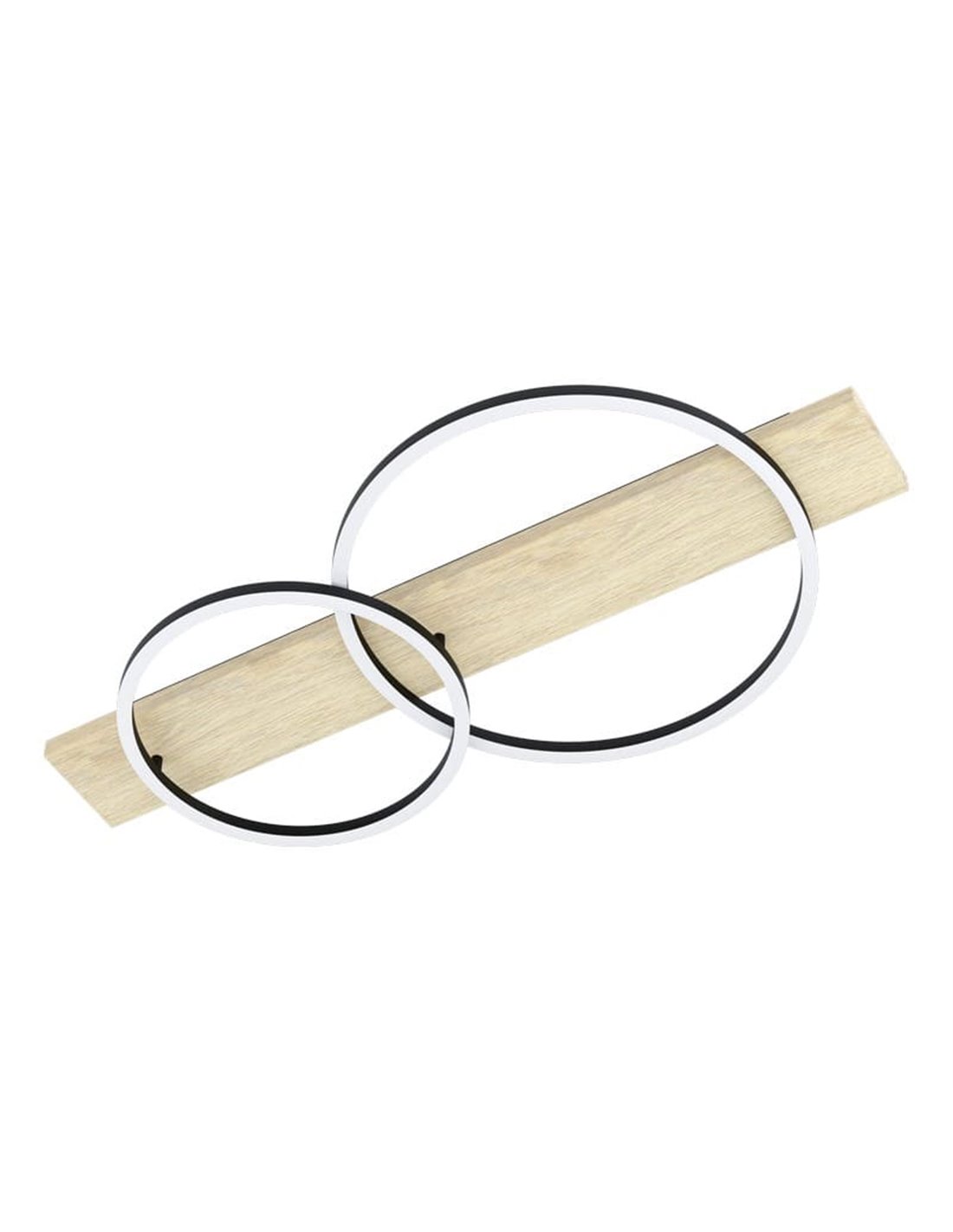 Plafón de techo en base de madera BOYAL con 2 aros LED 24W 1700Lm 3000K luz cálida negro/roble 780MM