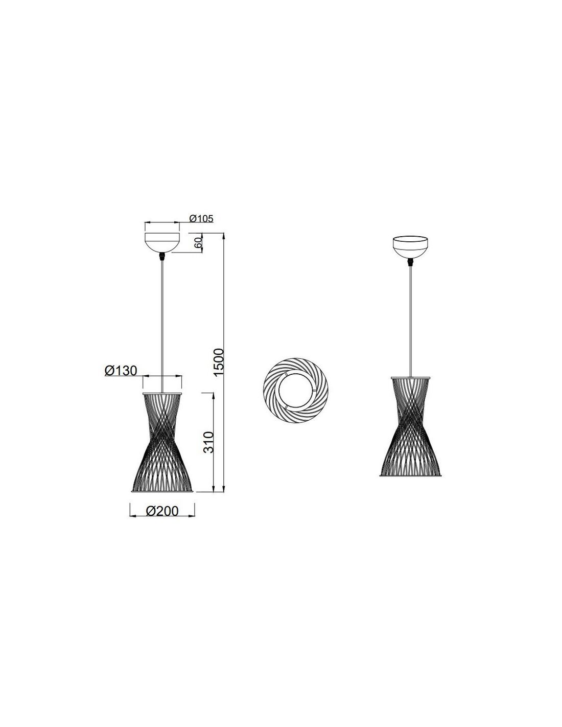 Deckenleuchte BIJOU mit Lampenschirm aus geflochtenem Papier und höhenverstellbar, perfekt, um jedem Raum einen natürlichen und einladenden Akzent zu verleihen. Kompatibel mit E27-Glühbirne (nicht enthalten) bis zu 10W. Elegantes Design mit Zertifizierung IP20.