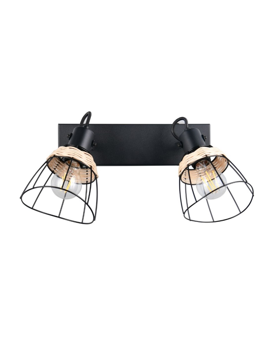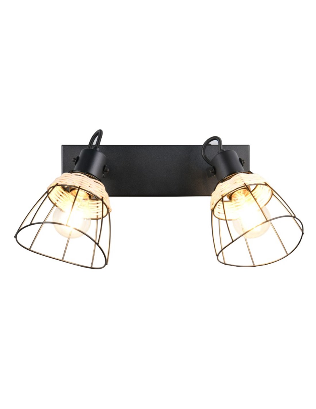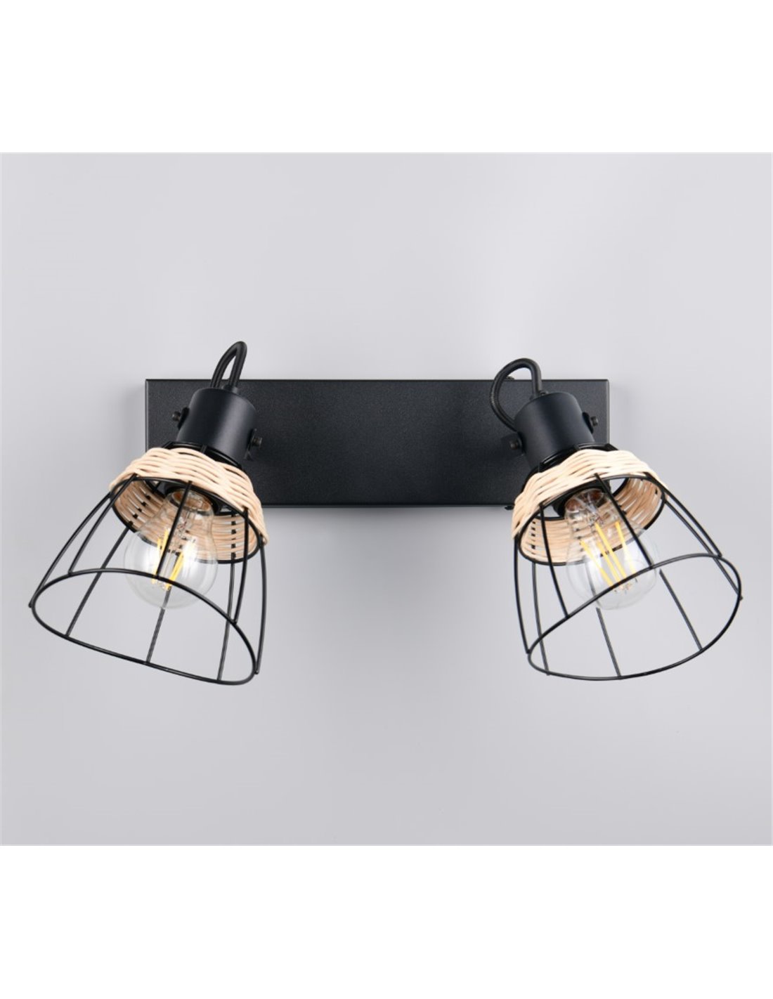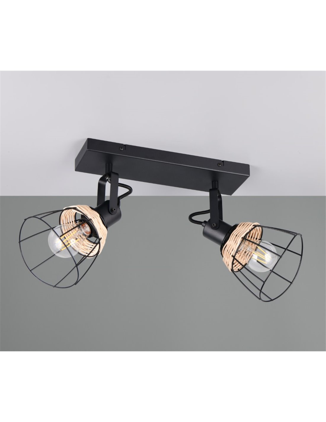 Die Deckenleuchte JEROME mit 2 Spots ist eine ideale Wahl, um Ihr Zuhause effizient und dekorativ zu beleuchten. Mit ihrem Gitter- und Rattandesign bietet sie eine warme und moderne Beleuchtung, die jede Umgebung ergänzt und eine einladende Atmosphäre schafft.