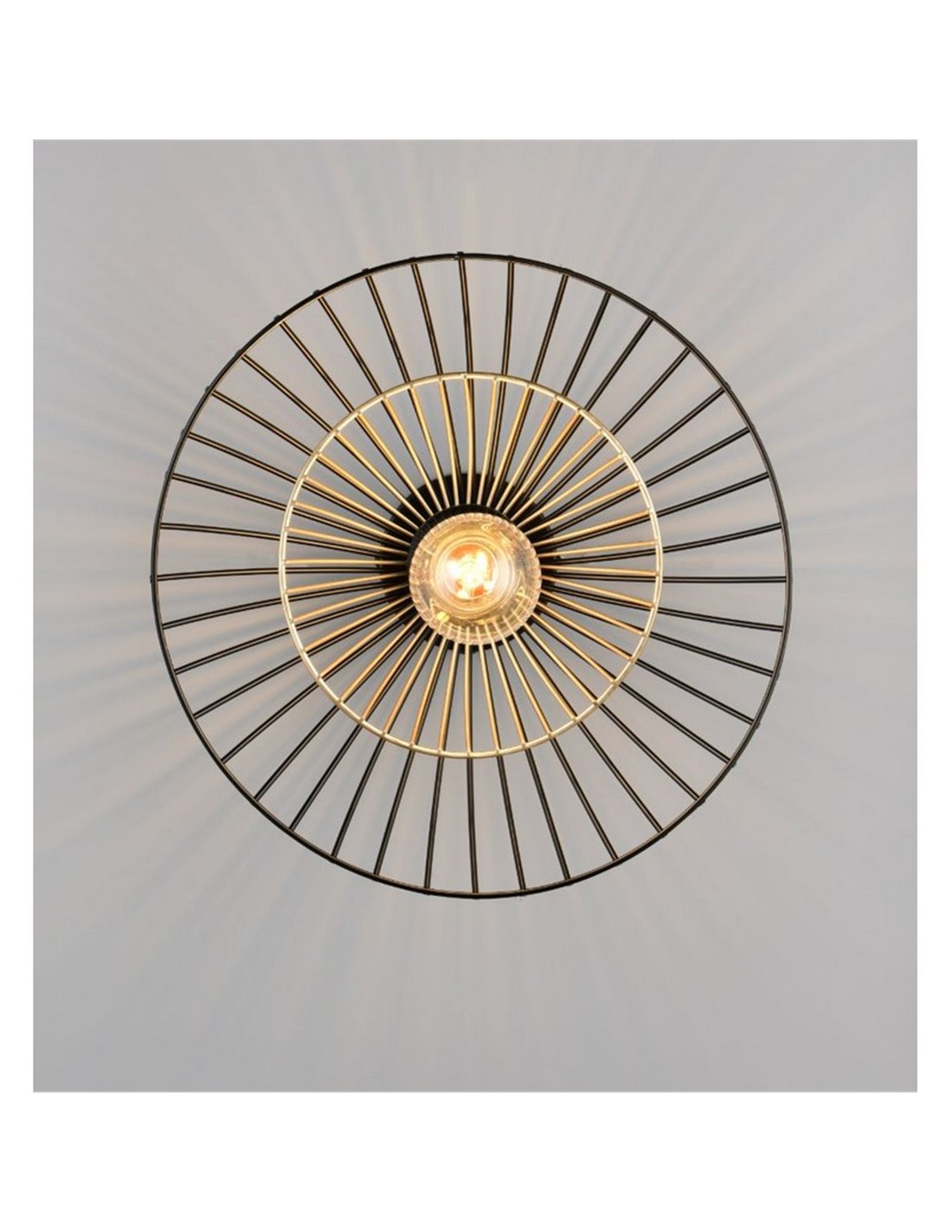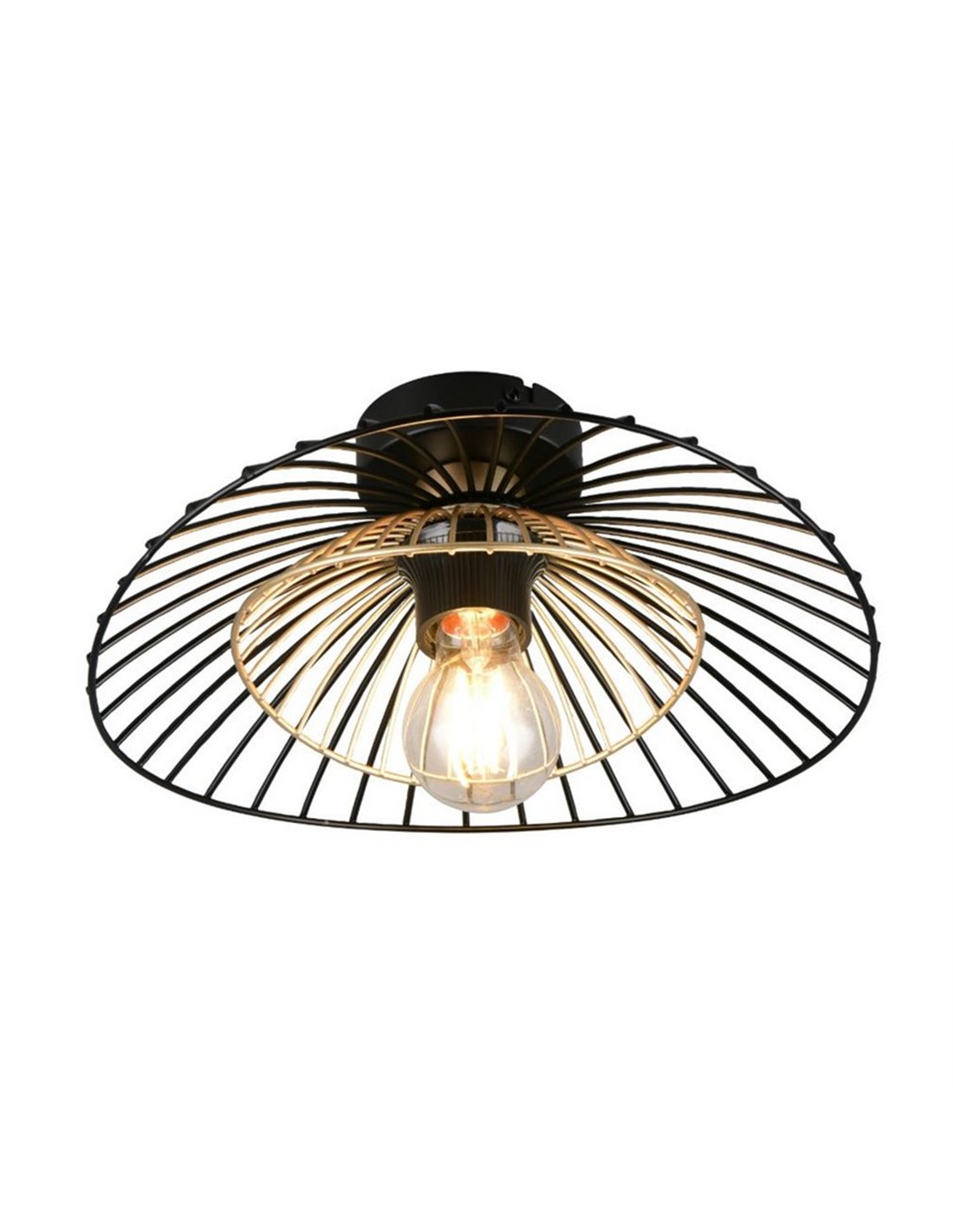 Die Deckenleuchte LAURIS besticht durch ihr Design mit Metallgitter, das die Glühbirne teilweise sichtbar lässt und einen modernen industriellen Stil verleiht. Ihre kompakte Form macht sie ideal für Flure, Eingangsbereiche oder Räume, in denen dekoratives Licht gewünscht wird, ohne viel Platz einzunehmen.