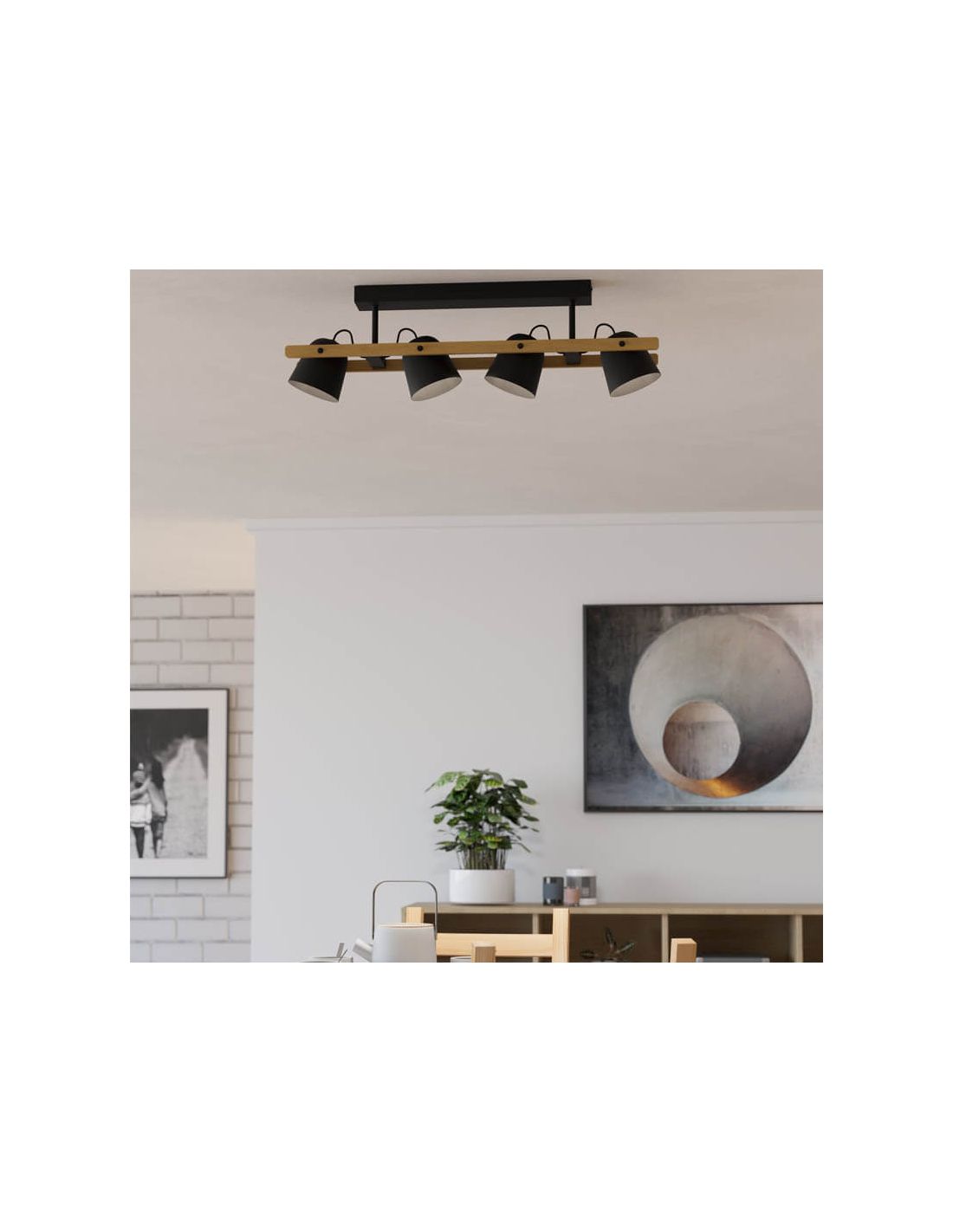 Deckenleuchte im skandinavischen Stil Schwarz und Holz Hornwood 4xE27