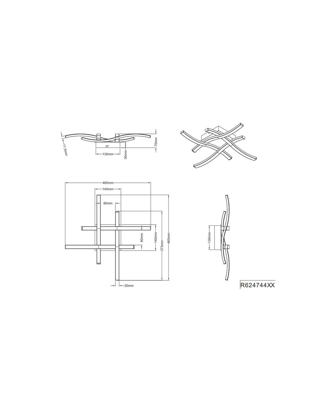 Plafon LED Decke ROUTE 46x46cm 5W 4x500lm, warmes Licht 3000K IP20 Nickel matt