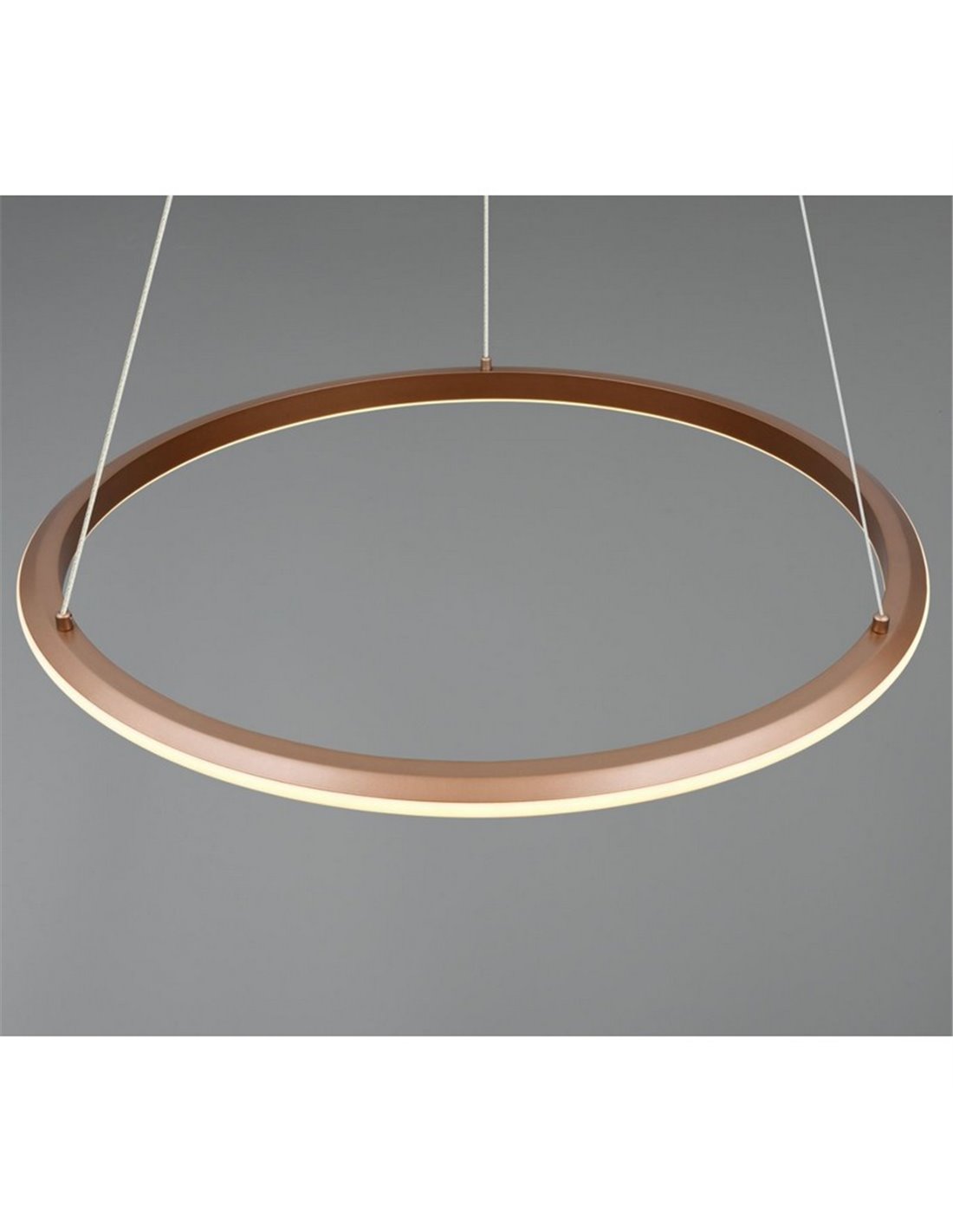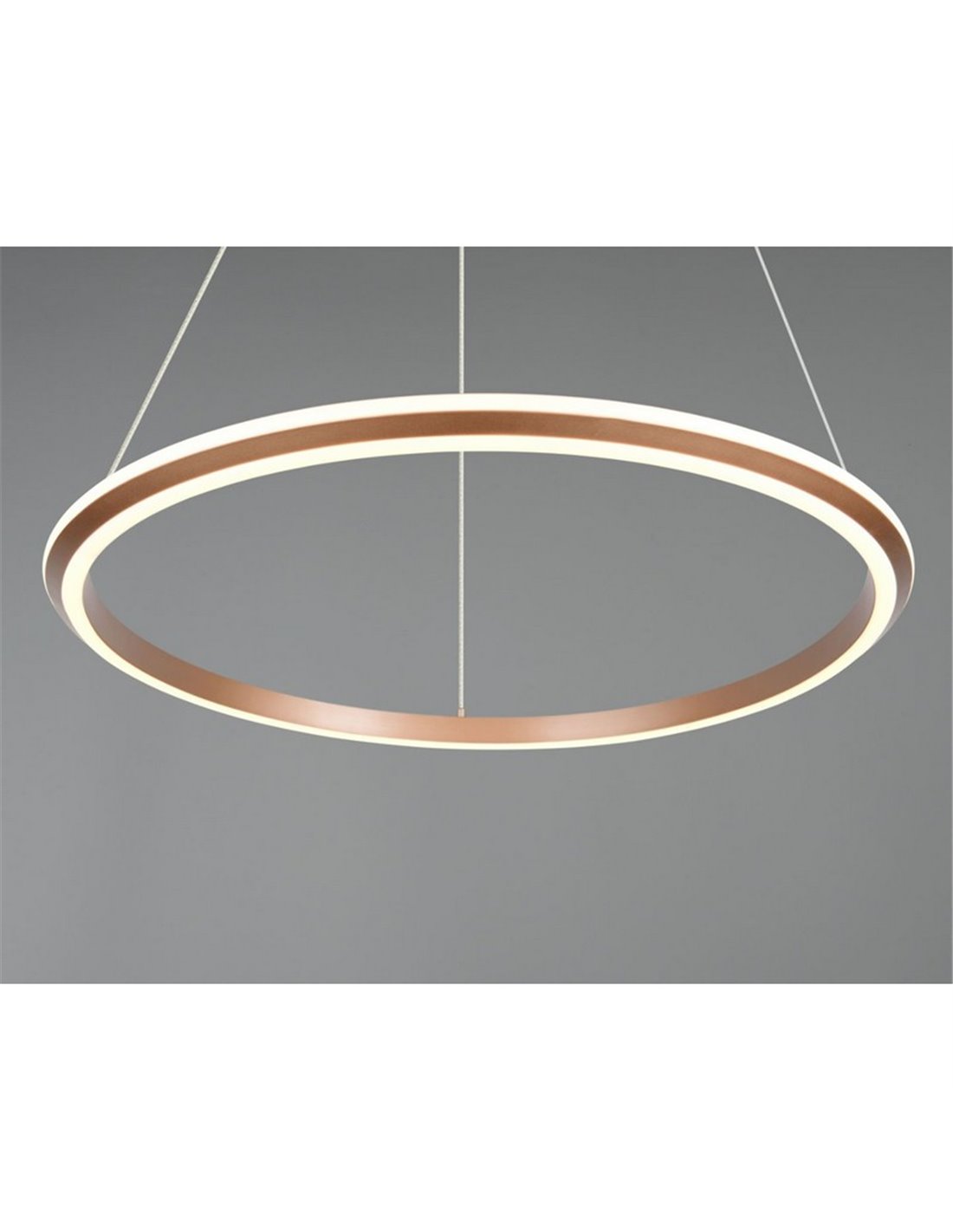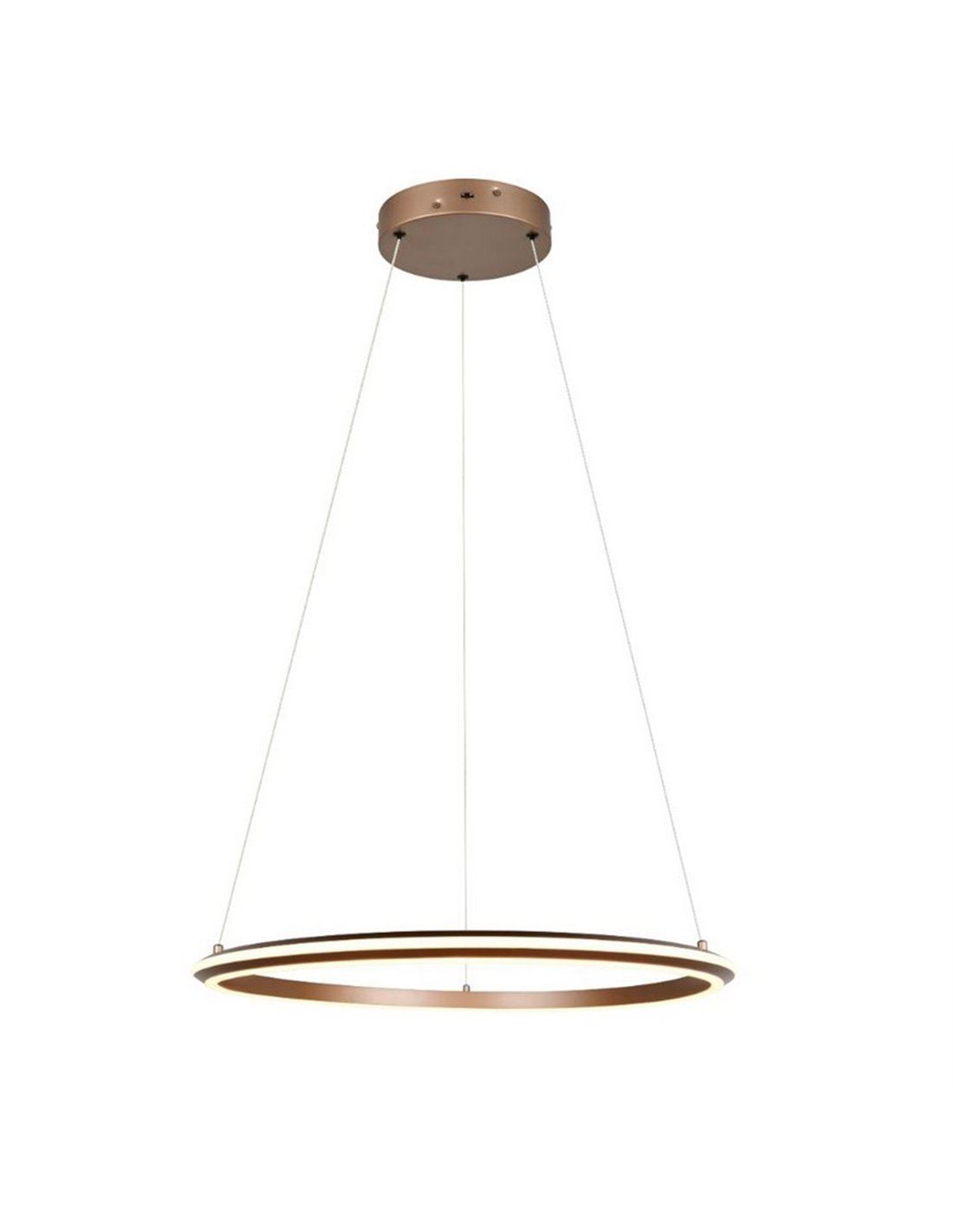 Die Deckenleuchte LED AMADOR Ø75 braun vereint zeitgemäßes Design und natürliche Materialien. Ihr metallischer Körper in gebürstetem Braun und der diffuse Schirm erzeugen gleichmäßiges Licht, das die Räume aufwertet, ohne zu blenden. Mit einem Durchmesser von 75 cm und höhenverstellbar, eignet sie sich ideal zur Beleuchtung von Wohnzimmern, Essbereichen oder großen Räumen mit einem schlichten und einladenden Stil.