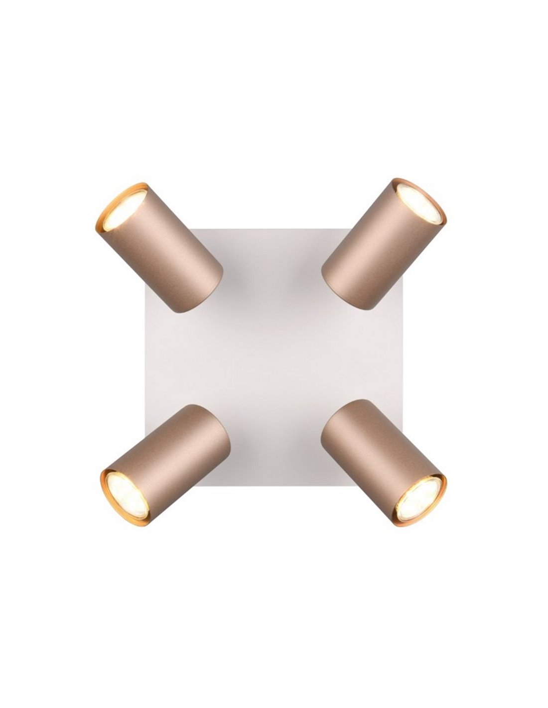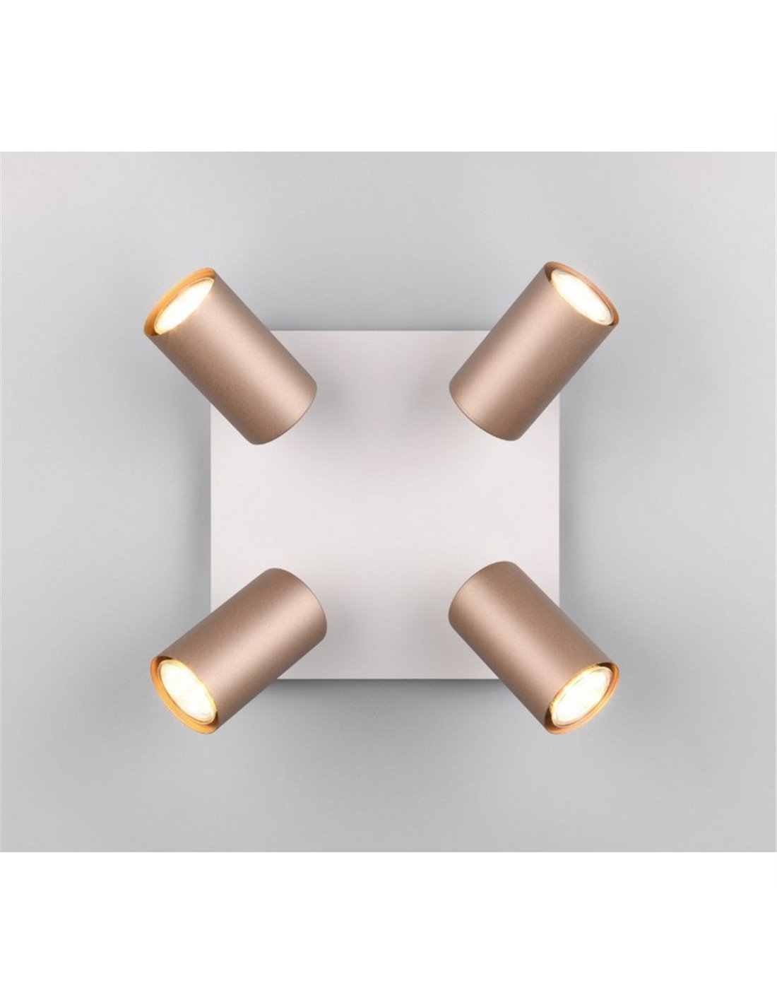 Die Deckenleuchte MARLEY verfügt über 4 Spots GU10 (Glühbirne nicht enthalten) mit einer maximalen Leistung von 35W jeweils. Ihr braun-beiges Design und der Schutz IP20 machen sie ideal für Innenräume.
