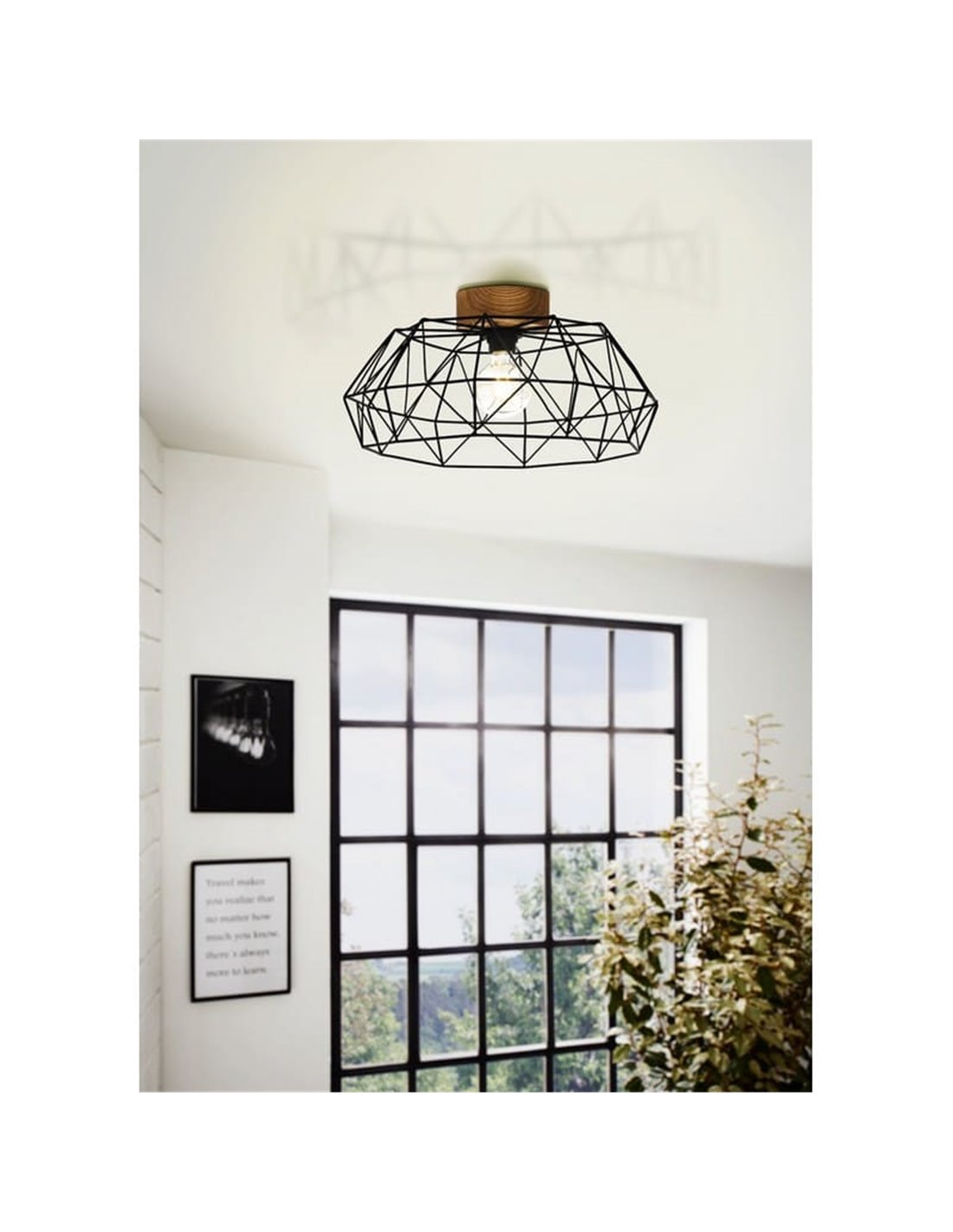 Deckenleuchte PADSTOW von Eglo, mit Struktur aus Holz und schwarzem Metall. Kompatibel mit E27-Glühlampen (nicht enthalten). Ideal zur Beleuchtung von Räumen mit modernem und rustikalem Touch.