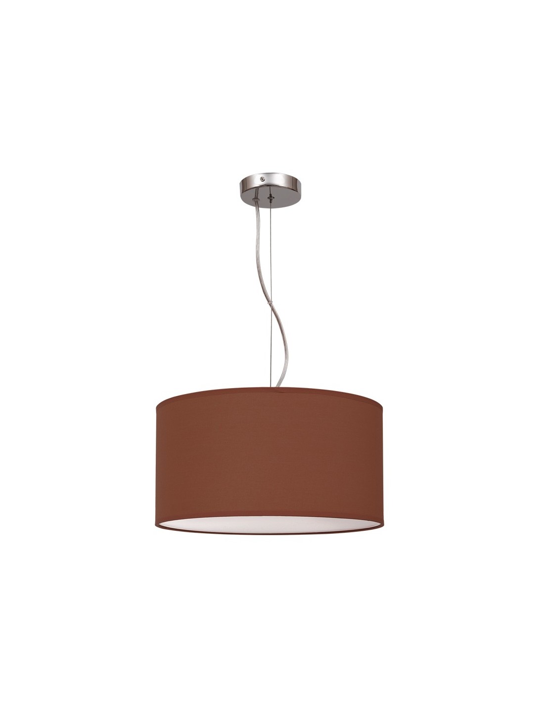 Deckenleuchte höhenverstellbar aus der Serie Nicole mit einem runden Schokoladenfarbigen Stoffschirm mit einem Durchmesser von 40Cm, die mittlere Deckenleuchte aus der Serie Nicole zur Installation von 2 LED-Lampen E27 im Innenbereich.