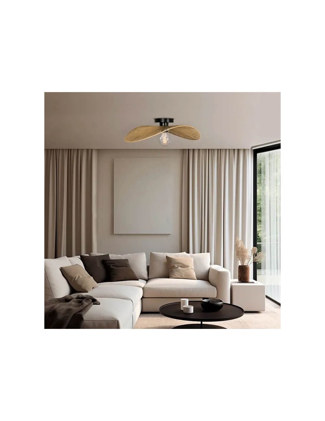 Die Deckenleuchte SIRUELA kombiniert elegantes Design mit hochwertigen Materialien, wie schwarzem Stahl und Papierschirm, und verleiht jedem Raum einen modernen und rustikalen Stil. Diese Deckenleuchte ist ideal für Wohnzimmer, Esszimmer und Schlafzimmer, wo eine sanfte Beleuchtung und ein Hauch von Raffinesse gewünscht wird.