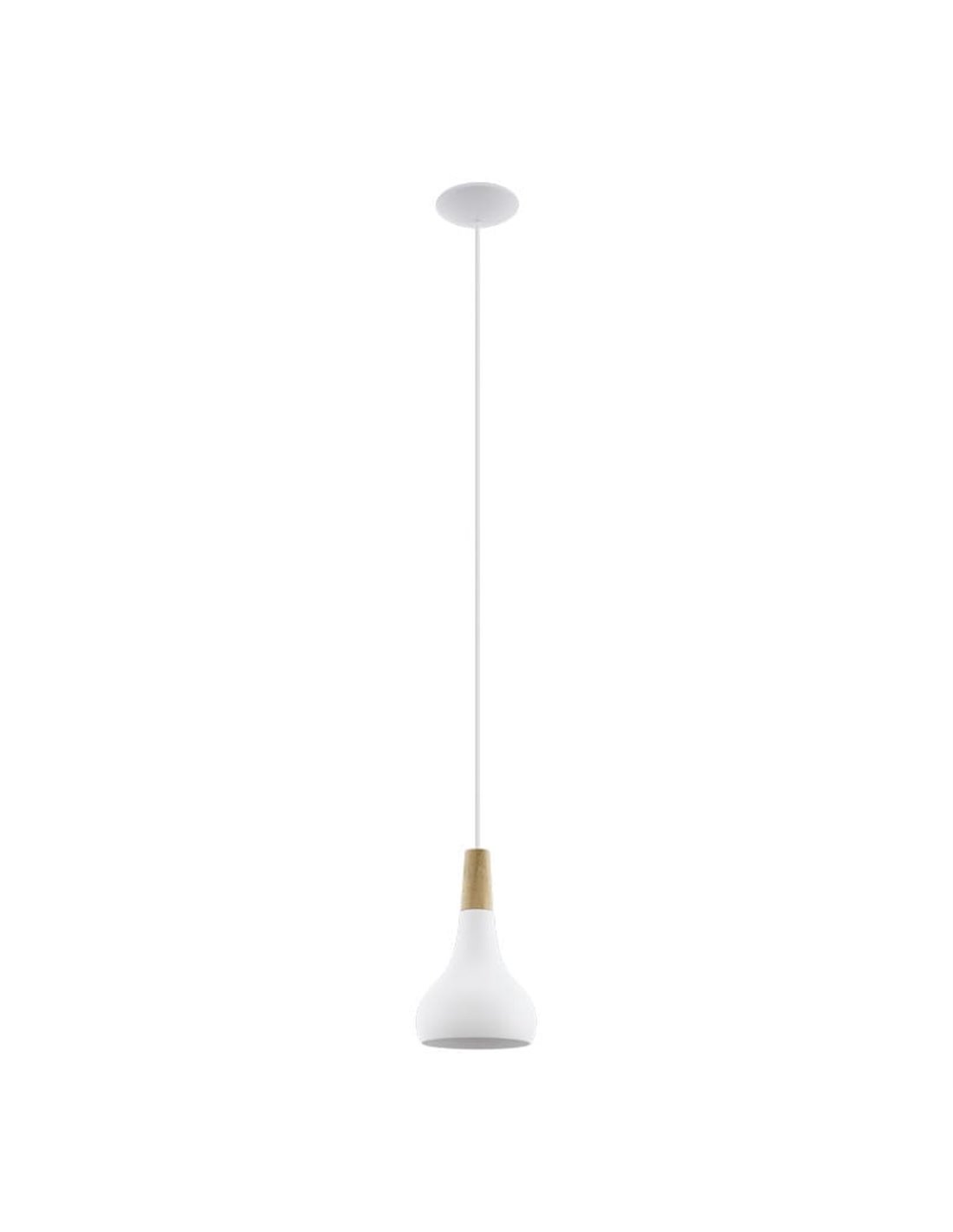 Pendelleuchte SABINAR von EGLO in Weiß und Holz, mit E27 für Innenräume. Abmessungen: ↕ 1100 mm | Ø 180 mm.