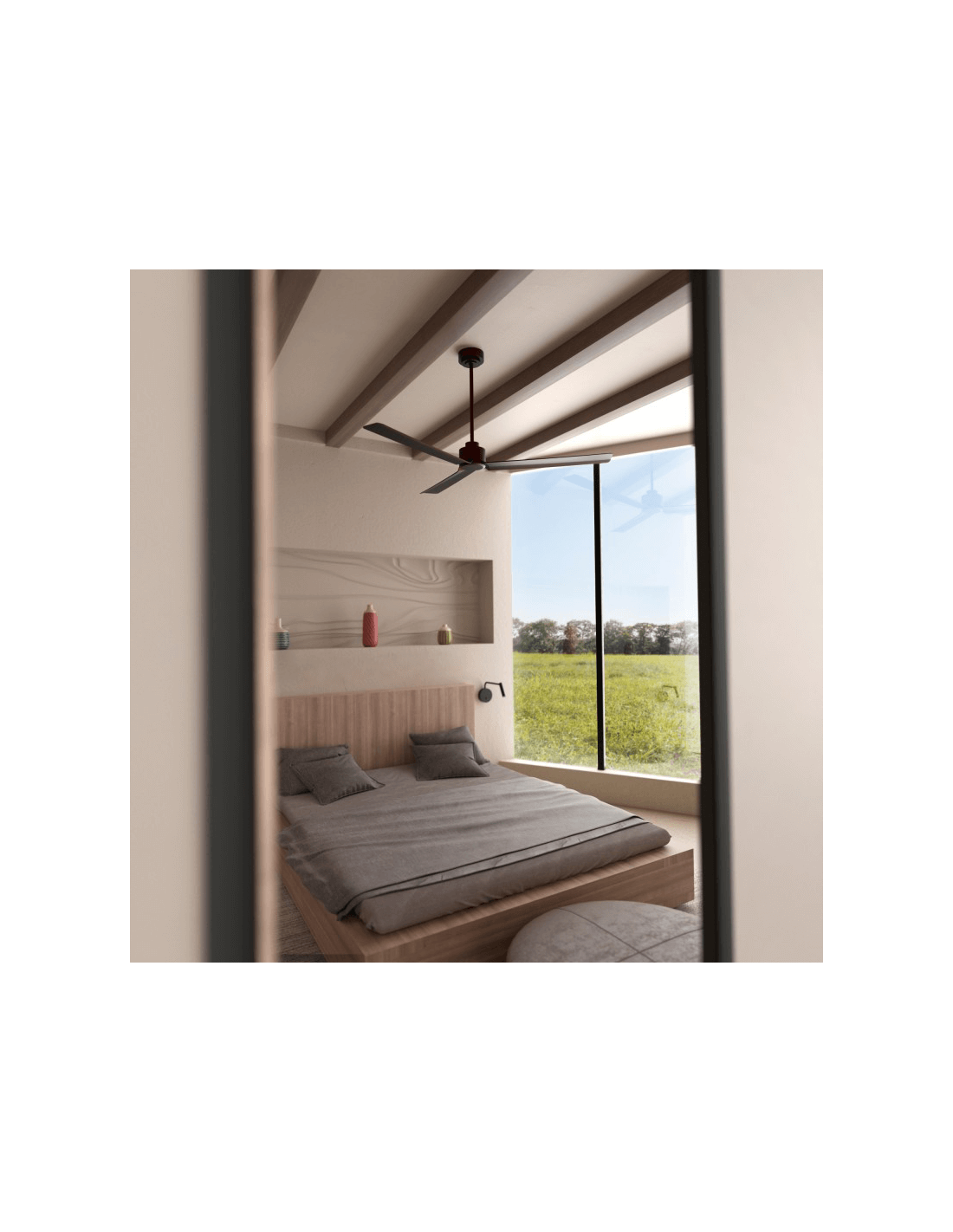 Verfügbar mit oder ohne Licht, enthält er eine Sommer-Winter-Funktion, einen Timer und einen ultra-leisen DC-Motor mit niedrigem Energieverbrauch. Der Deckenventilator Anne Rostbraun hat 3 Blätter und einen PMMA-Diffusor.