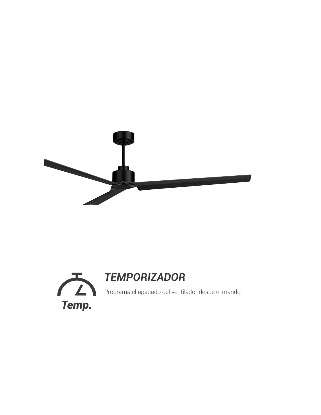 Mit seinem ultra leisen DC-Motor (15W) und seinen 3 großen ABS-Blättern garantiert der schwarze Ventilator Anne XL eine angemessene Belüftung in Räumen über 32m2 bei niedrigem Energieverbrauch. Er hat 6 einstellbare Geschwindigkeiten und hat im Höchstbetrieb ein minimales Geräuschniveau (max. 38 dB).