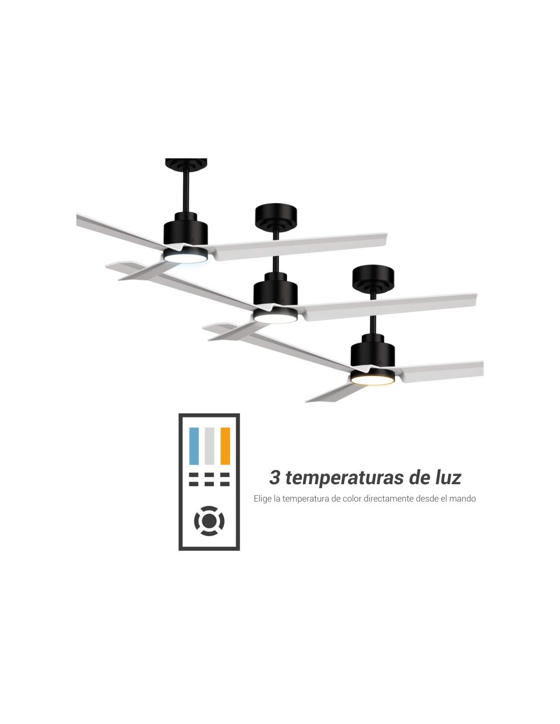Ventilador de Techo LED Anne negro con palas blancas DC para espacios amplios detalle