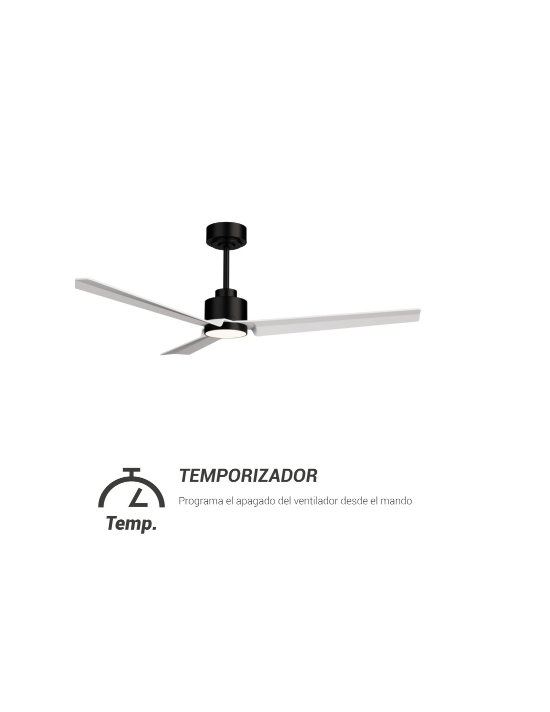 Ventilador de Techo LED Anne negro con palas blancas DC para espacios amplios temporizador