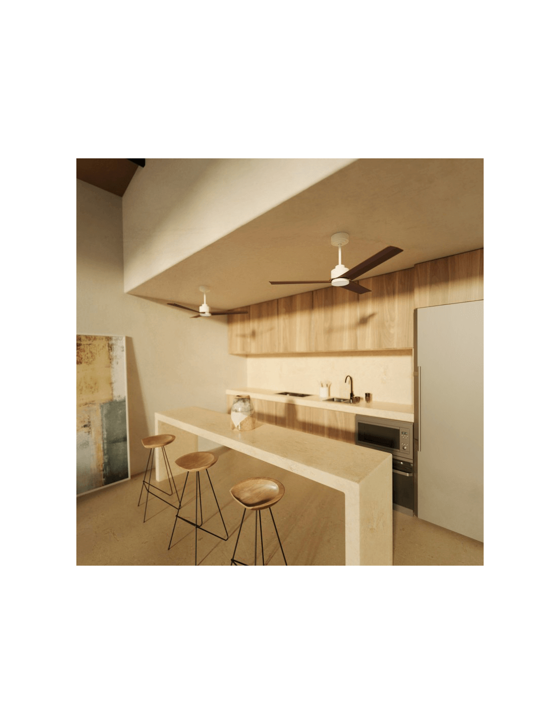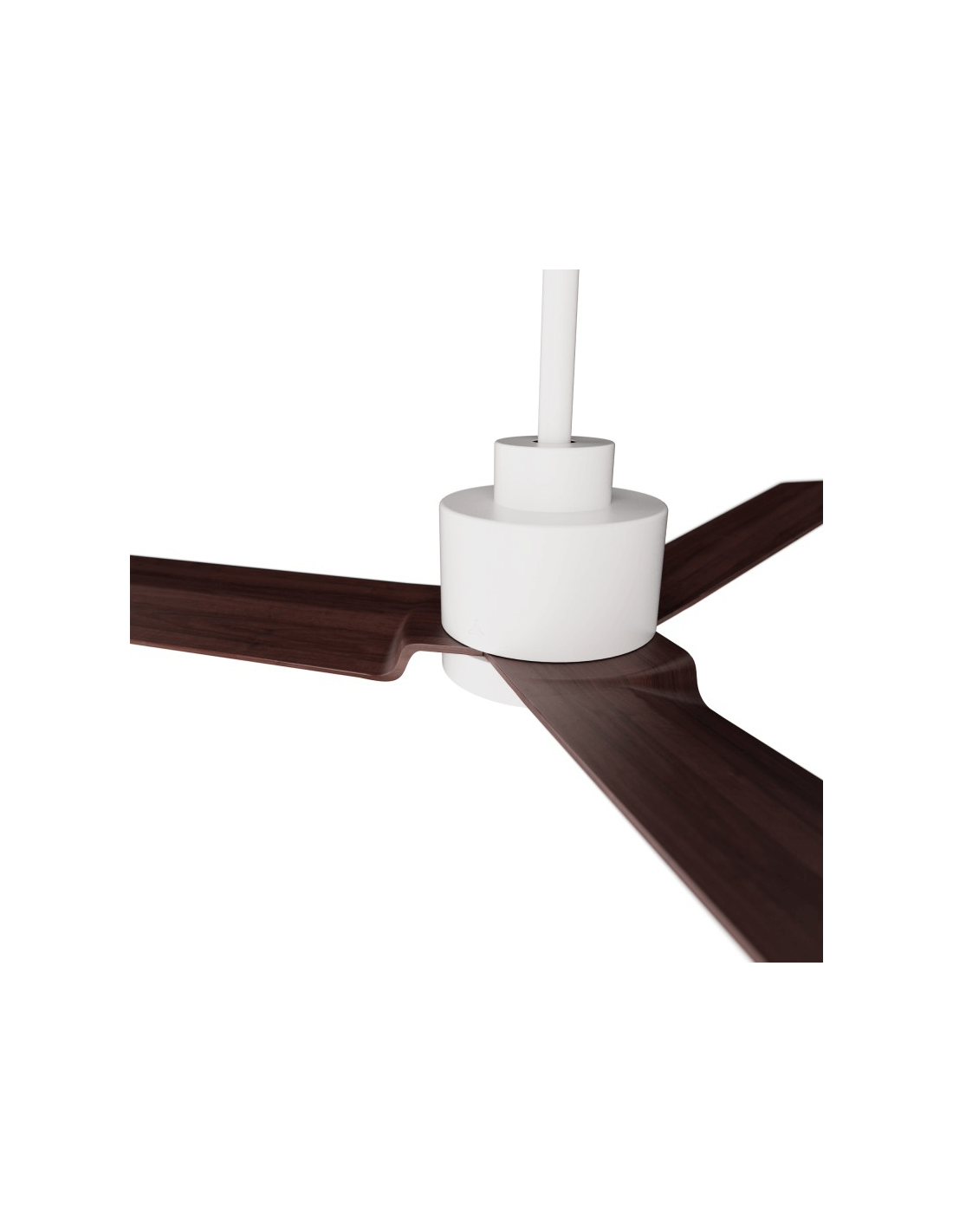 Mit zahlreichen Farbkombinationen, verschiedenen Stangenlängen und bis zu zwei unterschiedlichen Größen ist Anne in weißer Ausführung mit dunklen Holzblättern der Deckenventilator par excellence für moderne und minimalistische Stile.