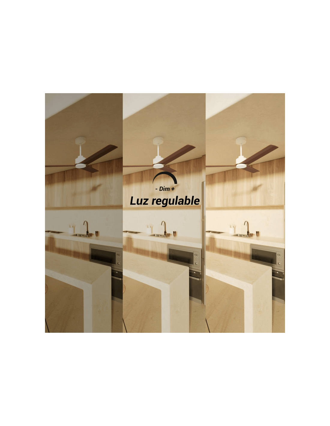 Ventilador de Techo LED Anne blanco con palas madera oscura DC para espacios amplios medidas