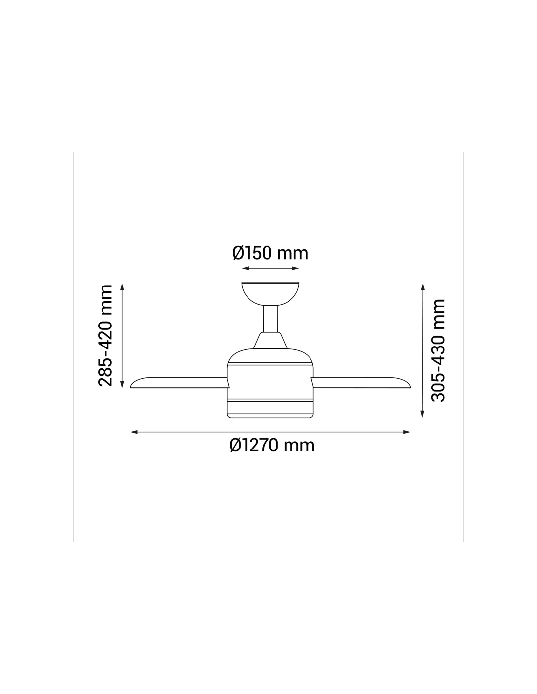 Die Leuchte hat eine maximale Leistung von 20W, bietet 2.000 Lumen und eine einstellbare Farbtemperatur (2700K - 3300K - 4000K). Sein Schutz IP20 macht ihn zum perfekten Deckenventilator für den Innenbereich wie Küchen, Wohnzimmer oder Schlafzimmer.
