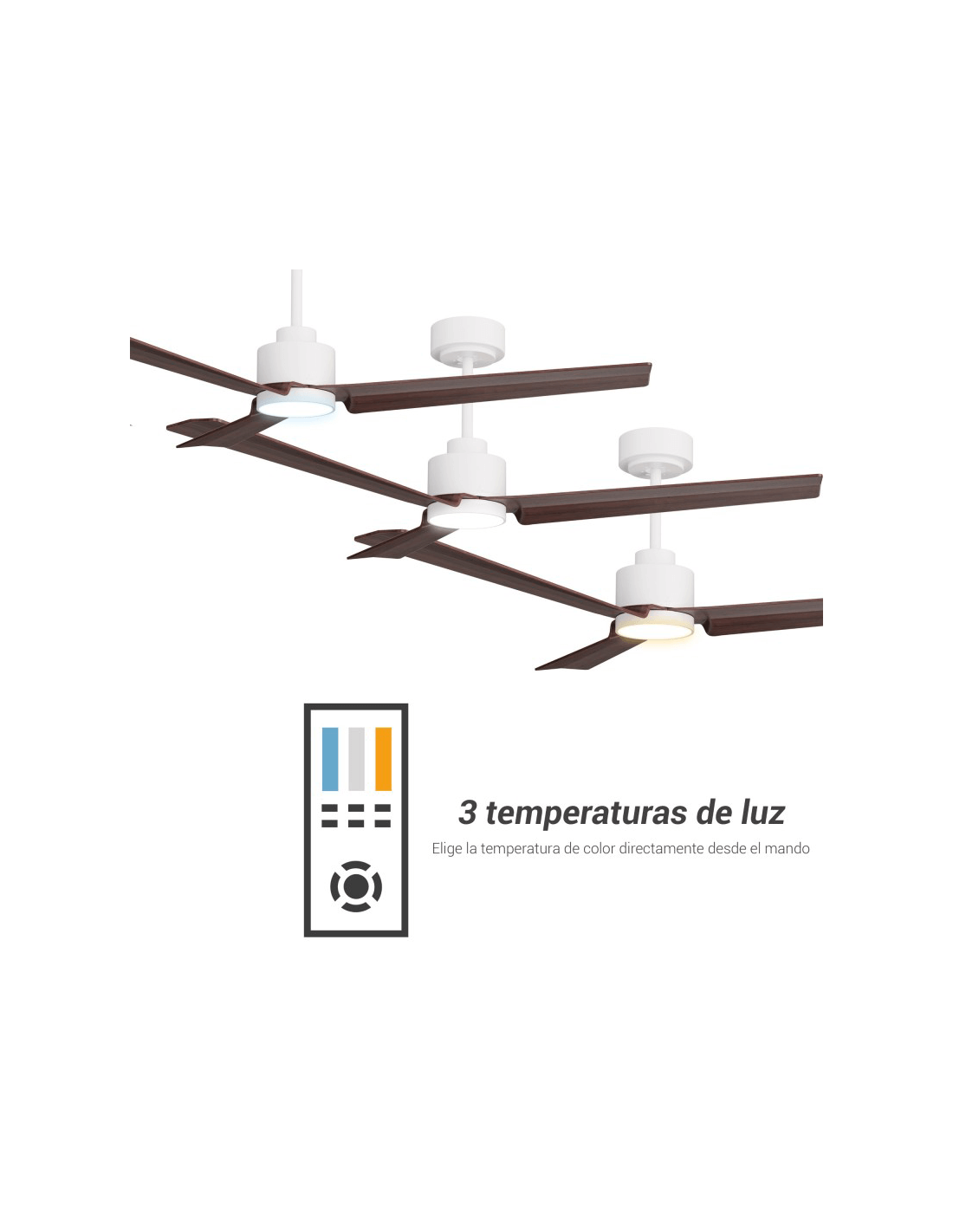 Ventilador de Techo LED Anne blanco con palas madera oscura DC para espacios amplios temperatura de luz