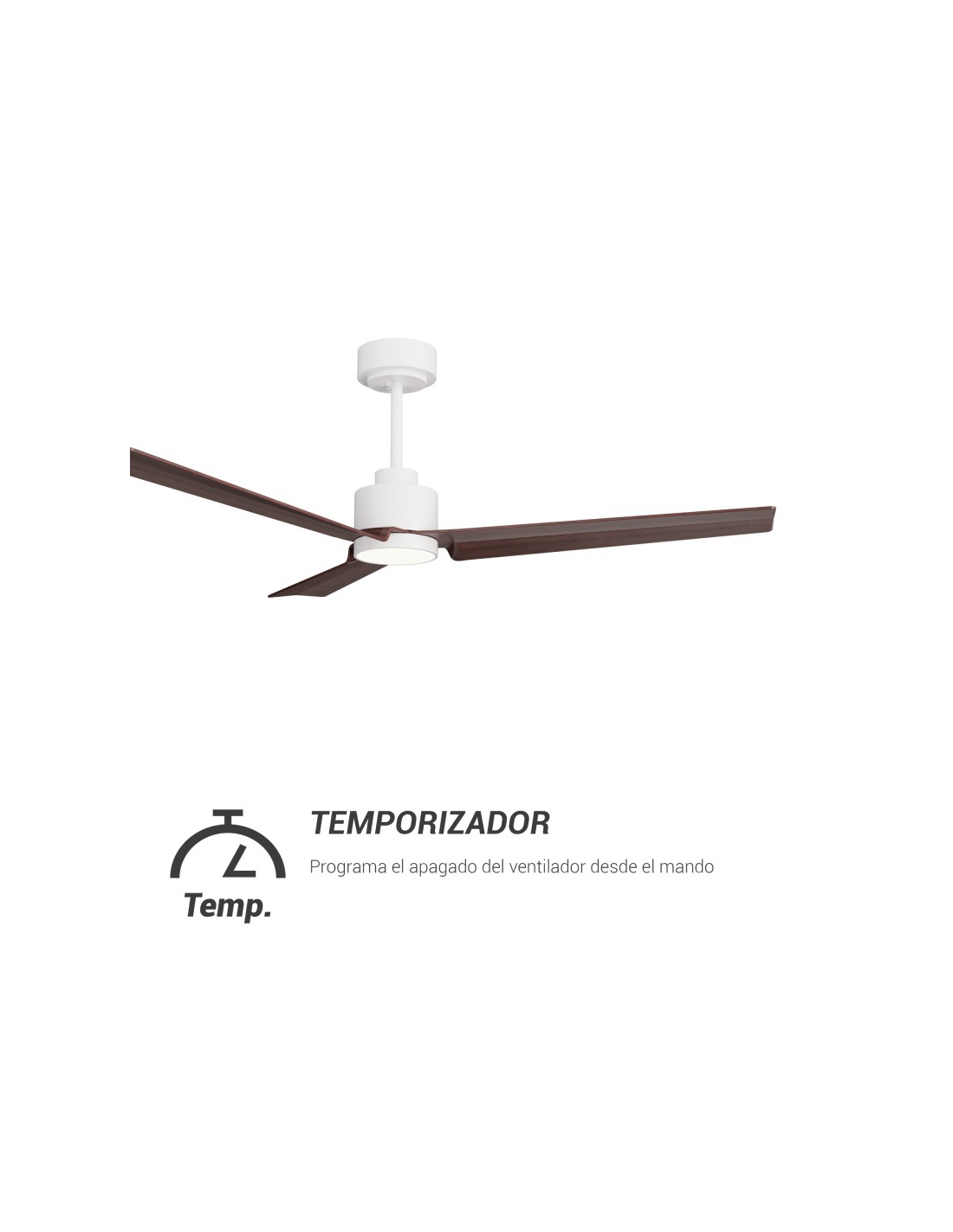 Ventilador de Techo LED Anne blanco con palas madera oscura DC para espacios amplios temporizador