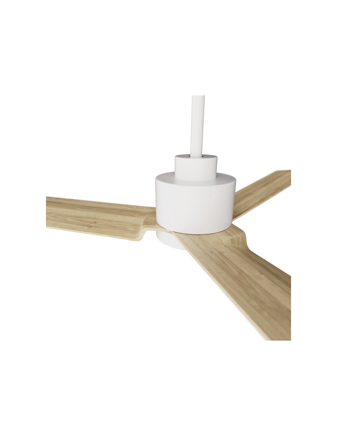 Mit zahlreichen Farbkombinationen, verschiedenen Stangenlängen und bis zu zwei unterschiedlichen Größen ist Anne in weißer Ausführung mit hellen Holzblättern der Deckenventilator par excellence für moderne und minimalistische Stile.