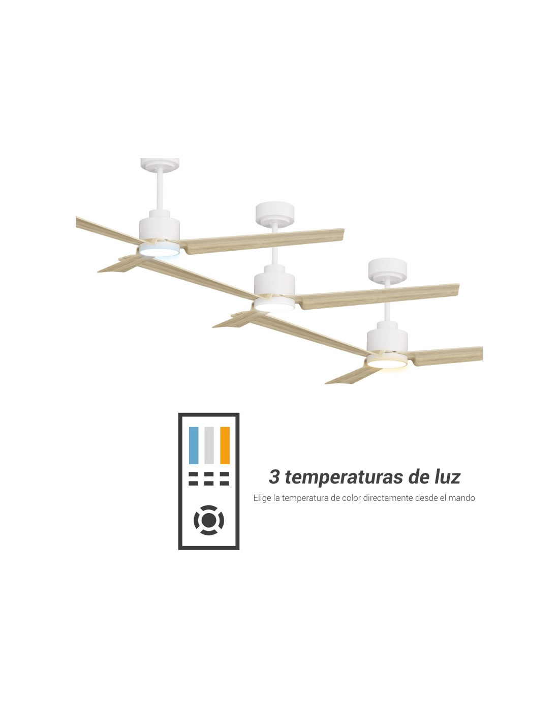 Ventilador de Techo LED Anne blanco con palas madera clara DC para espacios amplios temperaturas de luz