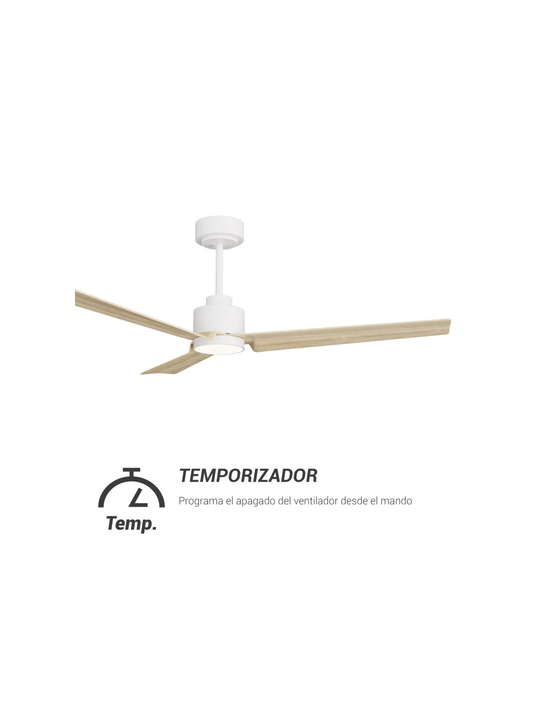 Ventilador de Techo LED Anne blanco con palas madera clara DC para espacios amplios temporizador