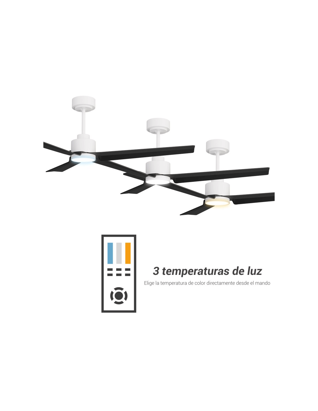 Ventilador de Techo LED Anne blanco con palas negras DC para espacios amplios temperaturas de luz