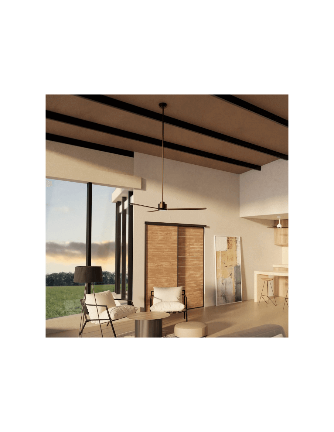 Mit seinem ultra leisen DC-Motor (15W) und seinen 3 großen ABS-Blättern garantiert er eine angemessene Belüftung in Räumen über 32m2 bei niedrigem Energieverbrauch. Er hat 6 einstellbare Geschwindigkeiten und hat im Höchstbetrieb ein minimales Geräuschniveau (max. 38 dB). Er passt in große Räume wie Küchen, Wohnzimmer, Büros oder Schlafzimmer.