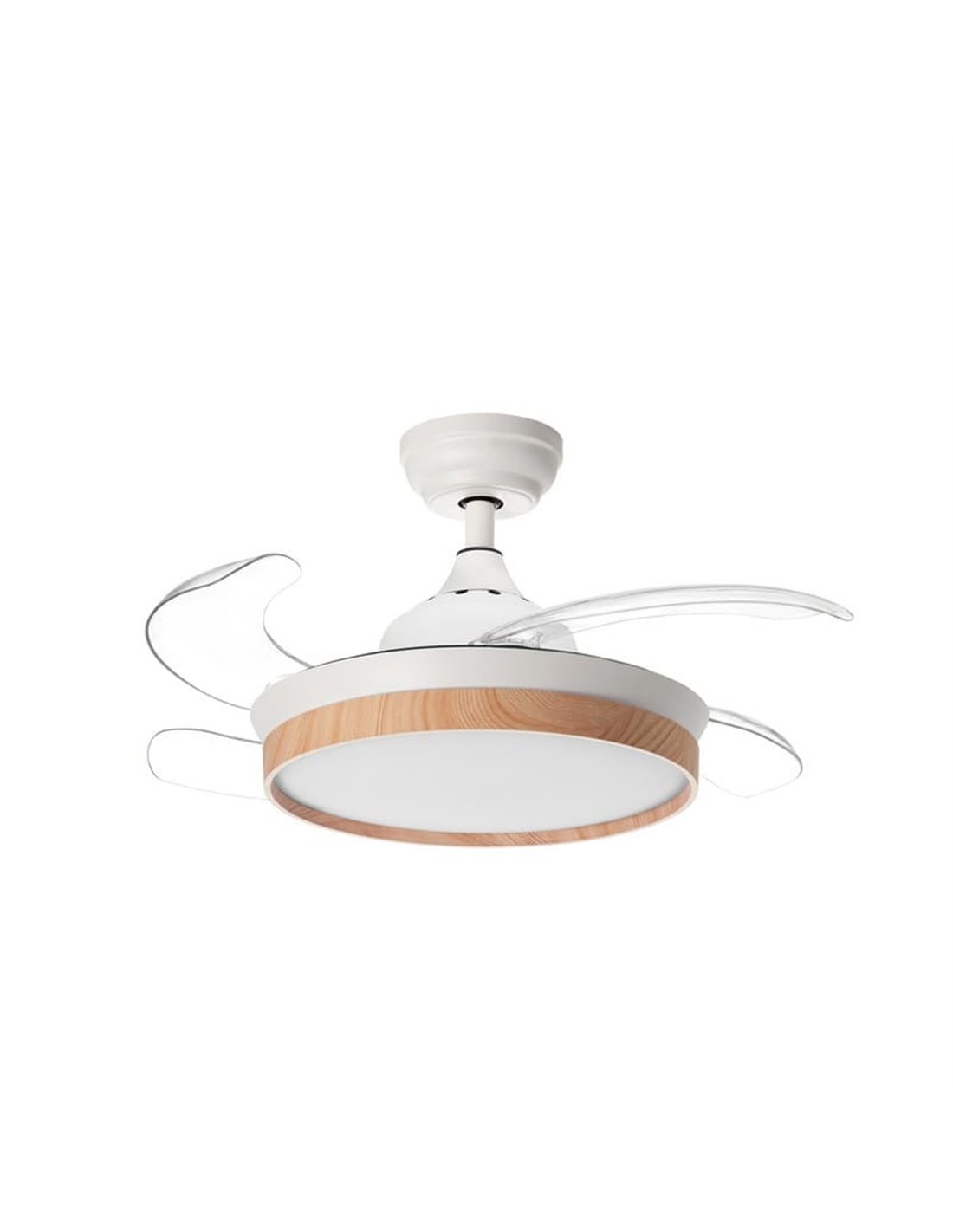 Deckenventilator LED BLANES XS weiß+holz Ø915 DC 22W LED 24W CCT+RC+dim mit Retractable-Blättern