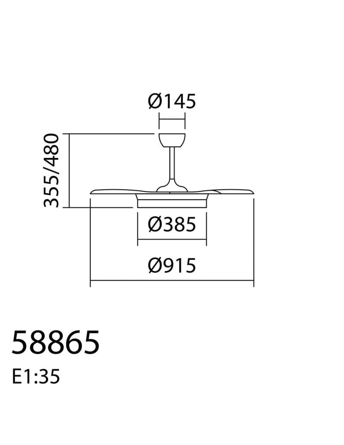 Die Fernbedienung erleichtert die Steuerung des Ventilators und des Lichts, sodass die Geschwindigkeit, die Farbtemperatur und die Lichtintensität von jedem Ort im Raum aus eingestellt werden können. Die Kombination aus Weiß und Holz verleiht einen modernen und eleganten Touch, der sich leicht in jeden Einrichtungsstil integrieren lässt.
