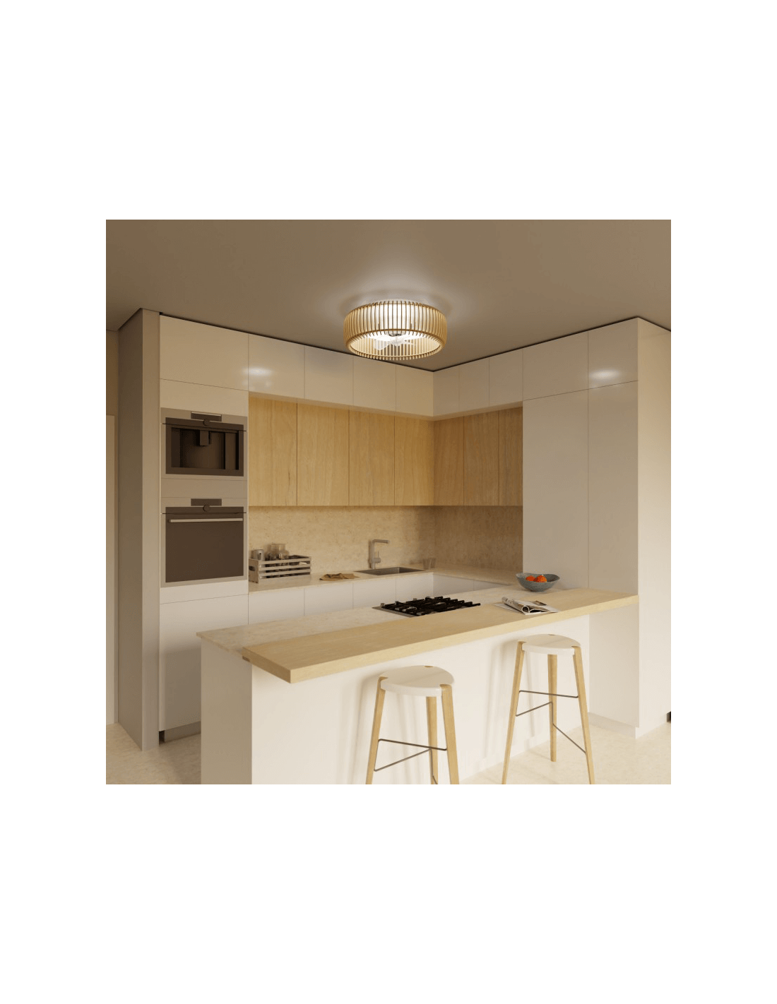 LED-Deckenventilator Nepal Buche und Weiß 75W LED und 60W Ventilatormotor