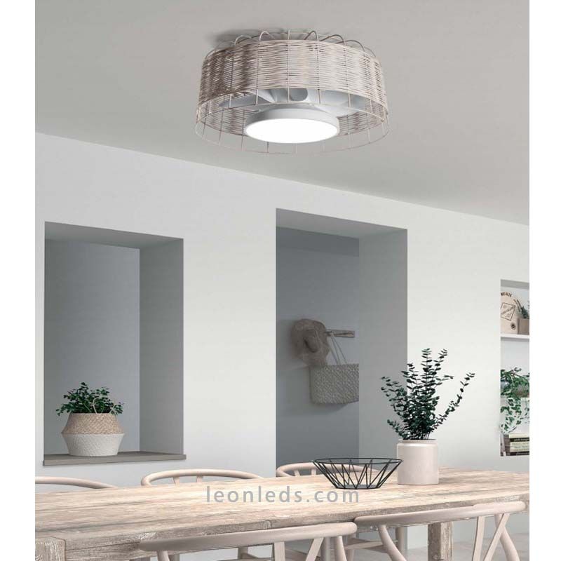 Dank seiner beiden verfügbaren Ausführungen, seiner Form und seinem rustikalen Design können Sie den Ventilator wählen, der am besten mit der Dekoration und dem Stil Ihres Zuhauses harmoniert und eine gemütlichere und natürlichere Atmosphäre in dem Raum schafft, in dem er installiert ist.