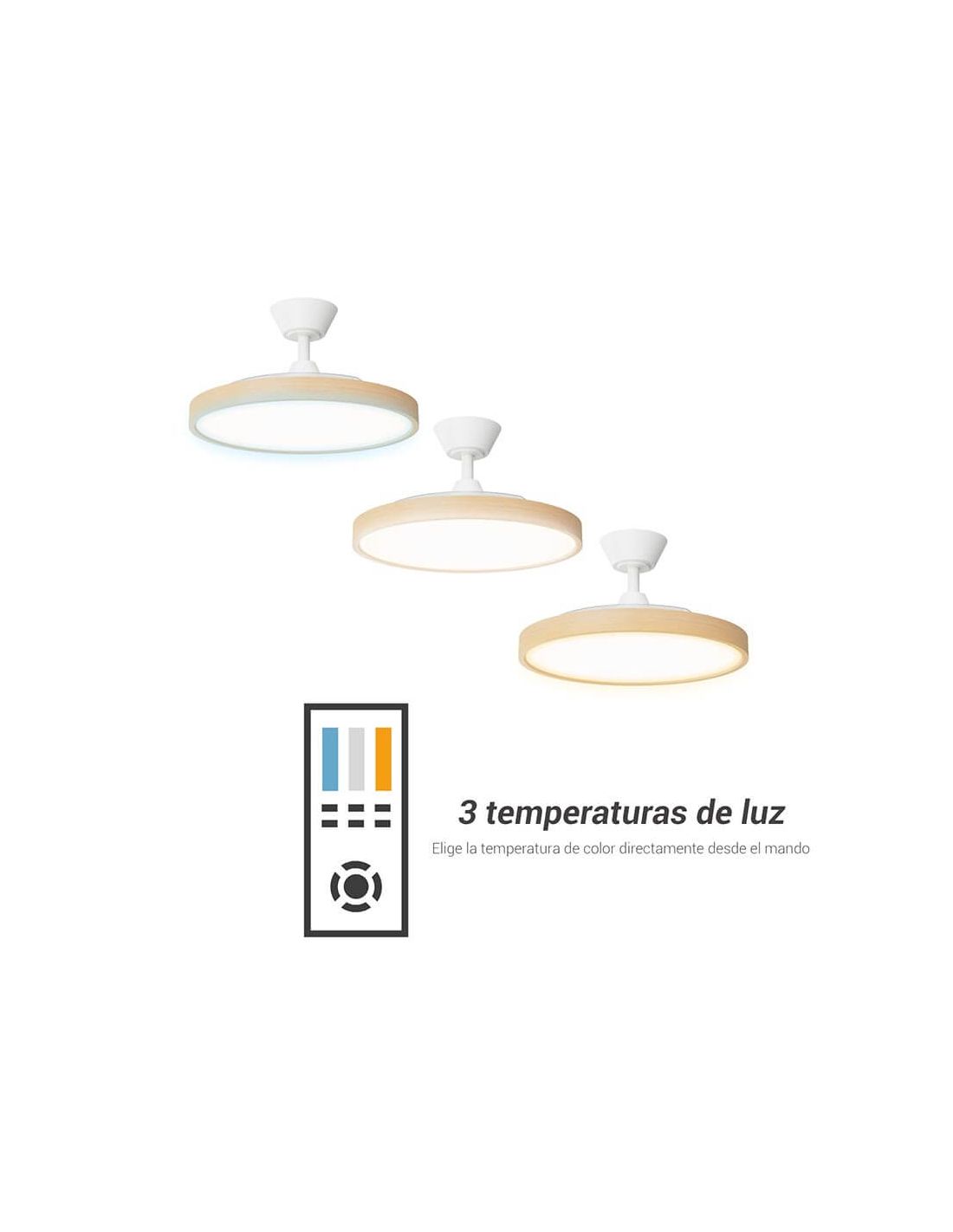 Der Deckenventilator mit einziehbaren Blättern BOMBAY ESTILO S in Holz ist die perfekte Kombination aus modernem Design und Funktionalität. Dieser innovative Ventilator verfügt über transparente einziehbare Blätter, die elegant verschwinden, wenn sie nicht in Gebrauch sind, und sich zu einer dezenten Lampe mit dimmbaren LED-Lichtern verwandeln. Dieser Ventilator ist ideal für jeden Raum und bringt sowohl Frische als auch Stil.