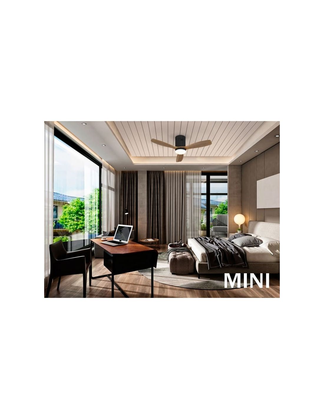 Tauchen Sie ein in eine Oase der Eleganz und Effizienz mit unserem Deckenventilator mit LED-Licht, einem Meisterwerk des Designs aus Metall in matt schwarz und Blättern aus Nussbaumholz. Dieser Ventilator bringt nicht nur einen Hauch von Stil in Ihr Zuhause, sondern bietet auch eine vollständige Lösung für Beleuchtung und Belüftung in jedem Raum.