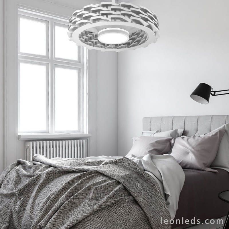 Der Rubik Deckenventilator LED in Weiß aus der Rubik WIFI-Serie von Sulion kann auf 3 verschiedene Arten gesteuert werden: mit der Fernbedienung (im Lieferumfang enthalten), über die App „Tuya“ und per Sprachsteuerung wie Google Home, Alexa.... Es ist ein Deckenventilator ohne Flügel, der eine neuartige Technologie verwendet, um die Luft von der zentralen Stelle aufzunehmen und eine gleichmäßige Verteilung im Raum zu ermöglichen. Hergestellt aus einer metallischen Struktur in weißer Farbe, mit Flügeln aus ABS und einem Lichtdiffusor aus Kunststoff. Dieser Rubik Ventilator von Sulion hat LEDs mit einer Leistung von 36W in der Mitte und 15W an der Seite, die eine Gesamthelligkeit von 2500Lm erreichen können, während sowohl die Intensität als auch der Lichtfarbton über die 3 Steuerungsoptionen des Ventilators reguliert werden können.