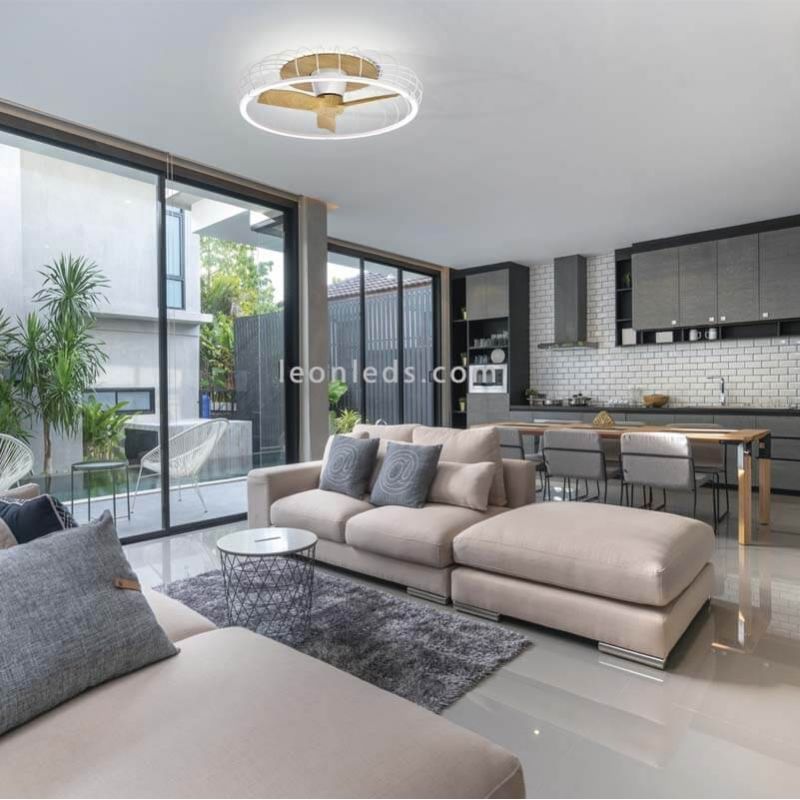 Der Nature-Ventilator ist perfekt, um einen kompletten Raum zu beleuchten, da er über eine Lichtleistung von 75W und 5000lm verfügt. Darüber hinaus ermöglicht dir die enthaltene Fernbedienung sowie die Bluetooth-Funktion und die Steuerung über die mobile APP eine personalisierte Beleuchtung für jeden Moment des Tages. sowohl die Intensität als auch die Lichtfarbe können von 2700k bis 5000k reguliert werden und er hat auch einen Timer und eine Nachtfunktion.