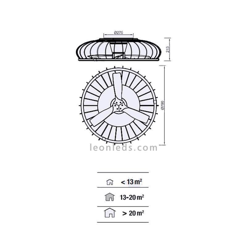 Eine der Neuheiten dieses LED-Ventilators Nature ist, dass er über eine integrierte LED-Technologie im ringförmigen Lichtdiffusor verfügt und auch von der oberen Seite der Deckenmontage Licht ausstrahlt, was einen sehr angenehmen und dekorativen Lichteffekt erzeugt.