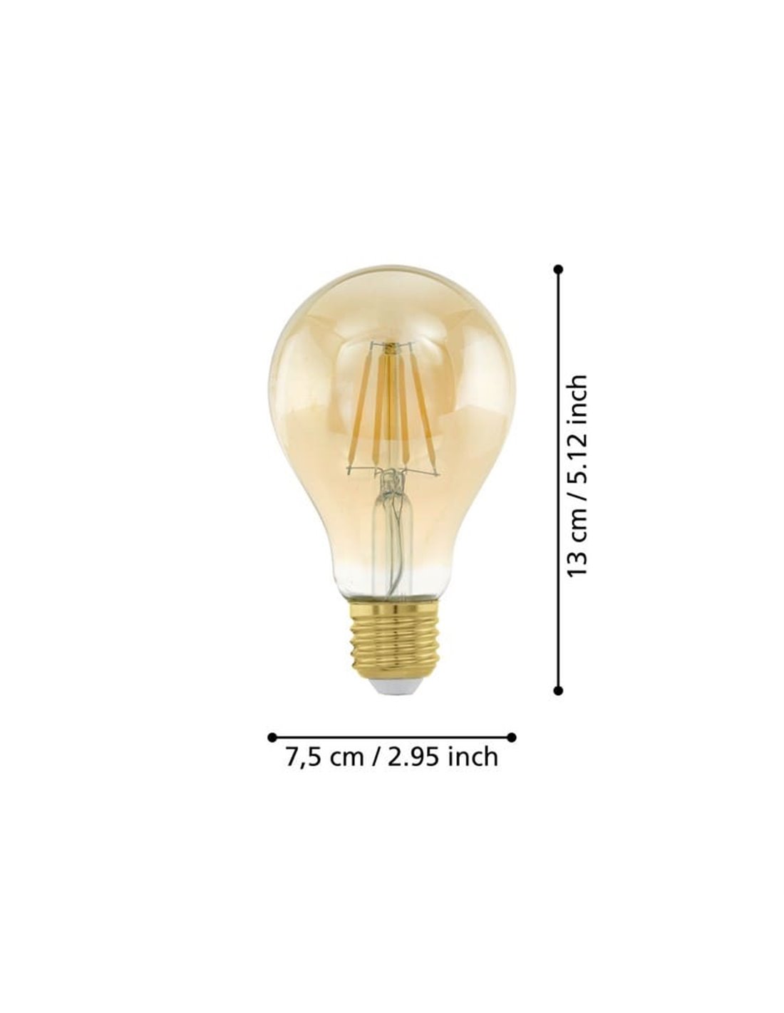 Dekorative LED-Birne A75 mit amberfarbenem Schirm, 4W und einer Farbtemperatur von 2200K. Ideal für Hängelampen oder Tischlampen. Fassung E27.