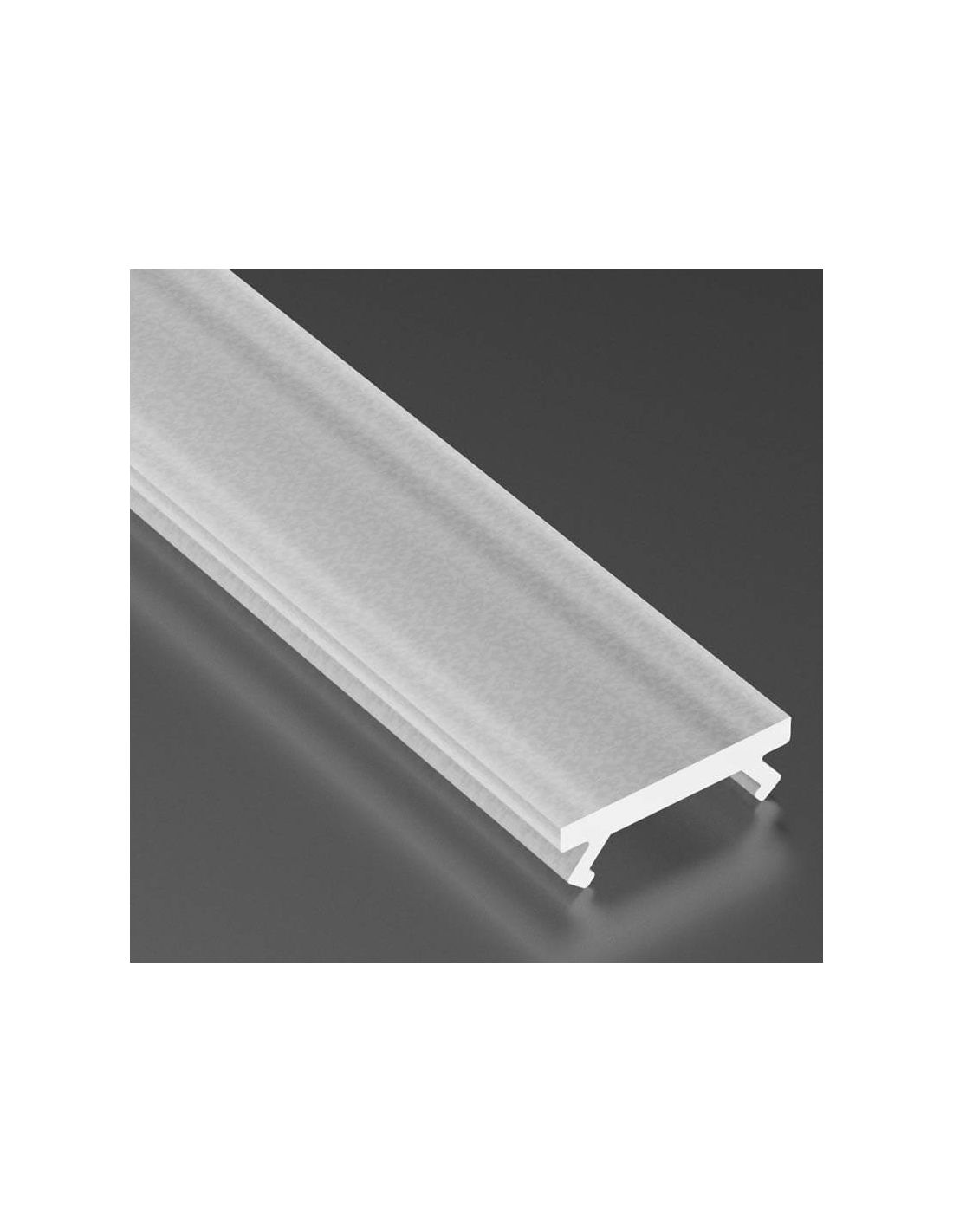 Halbtransparenter Diffusor gültig für Aluminiumprofile, ideal zum Streuen des von LED-Streifen emittierten Lichts, hergestellt aus 83% PMMA. Modell des halbtransparenten Diffusors, streut das Licht sanft. Lumines Basic V2 Cover PMMA Frosted Milky 2,02 Meter.