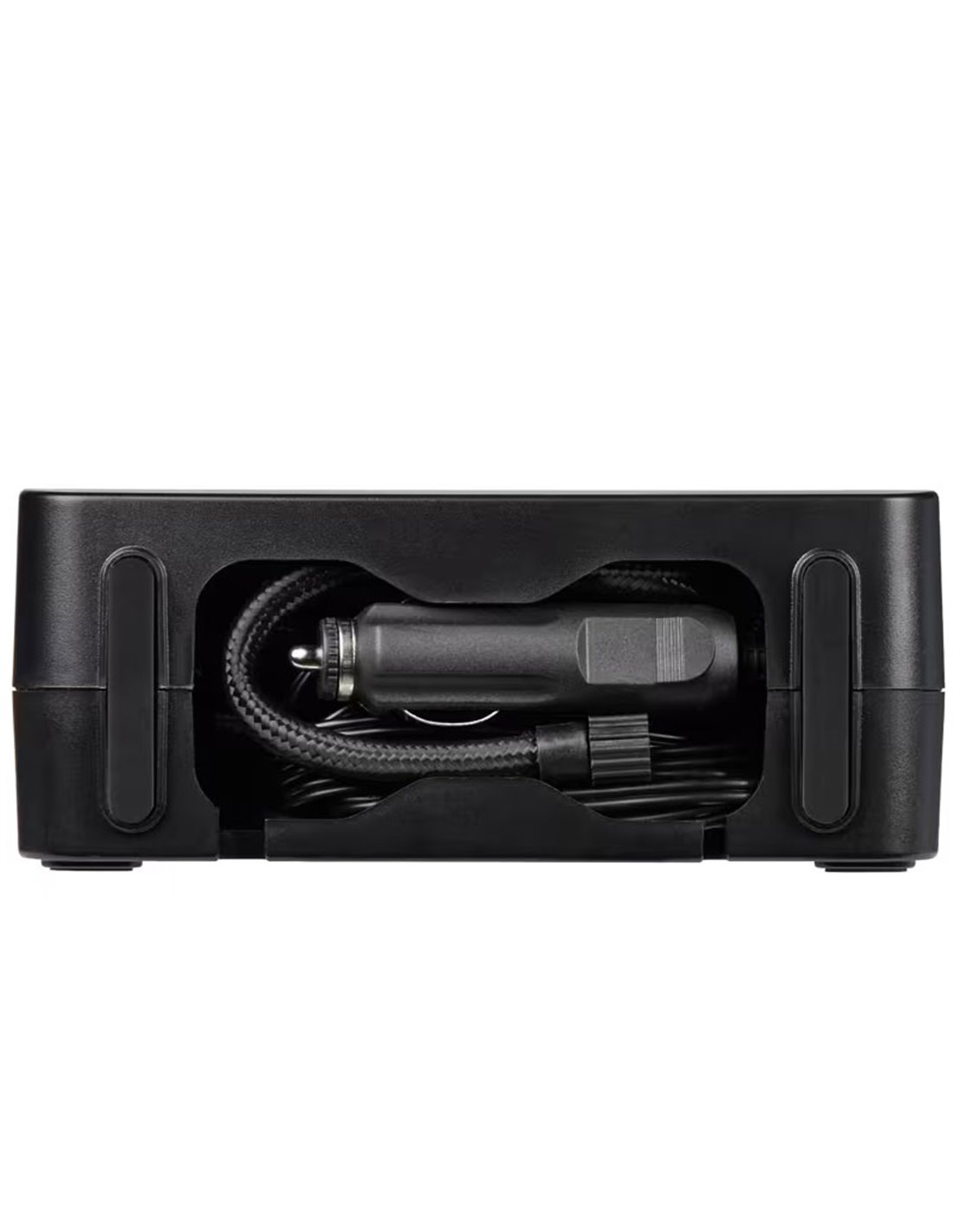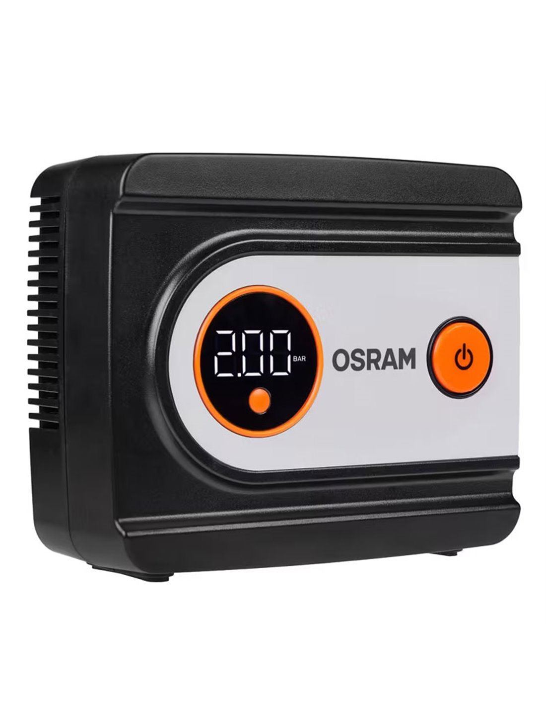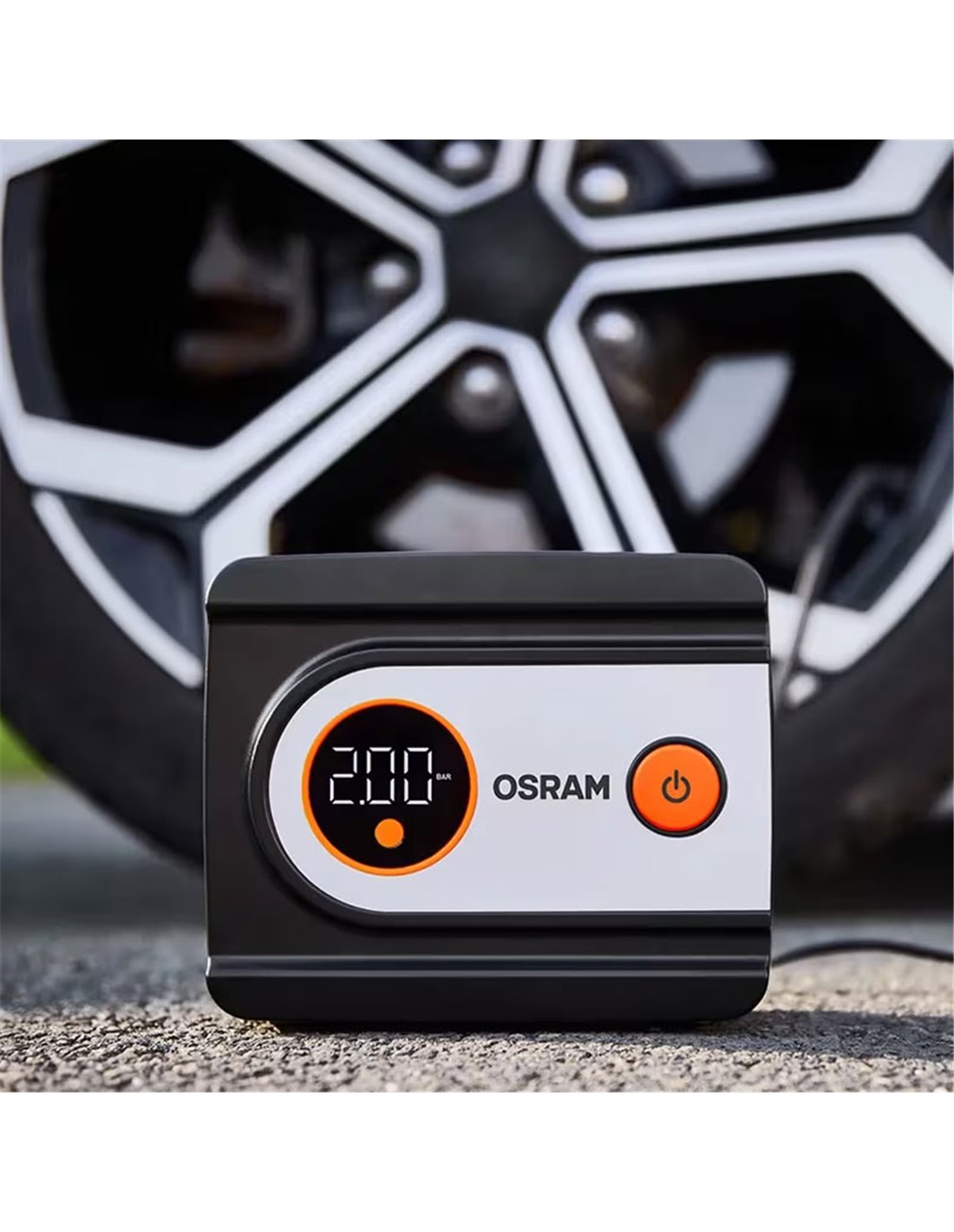 12V OSRAM TYREinflate 612 ESSENTIAL digitaler Reifenfüller mit hochrentablem Digitaldisplay (Anzeige auf eine Dezimalstelle) und Auswahl zwischen PSI, bar und kPa. Pumpt einen Standardreifen von 13” in ≈4,5 min auf und erreicht 100 psi / 6,9 bar. Bietet ein 3 m Kabel und 60 cm Schlauch, um bequem auf alle 4 Reifen zuzugreifen, ein-Tasten-Bedienung und integriertes Kabelmanagement. Enthält 3 Adapter für Bälle, Fahrräder und Matratzen. Kompaktes Design, 95 dB, 12 V Steckdose mit 15 A Sicherung und ±0,1 bar Genauigkeit für schnelles und zuverlässiges Aufpumpen.
