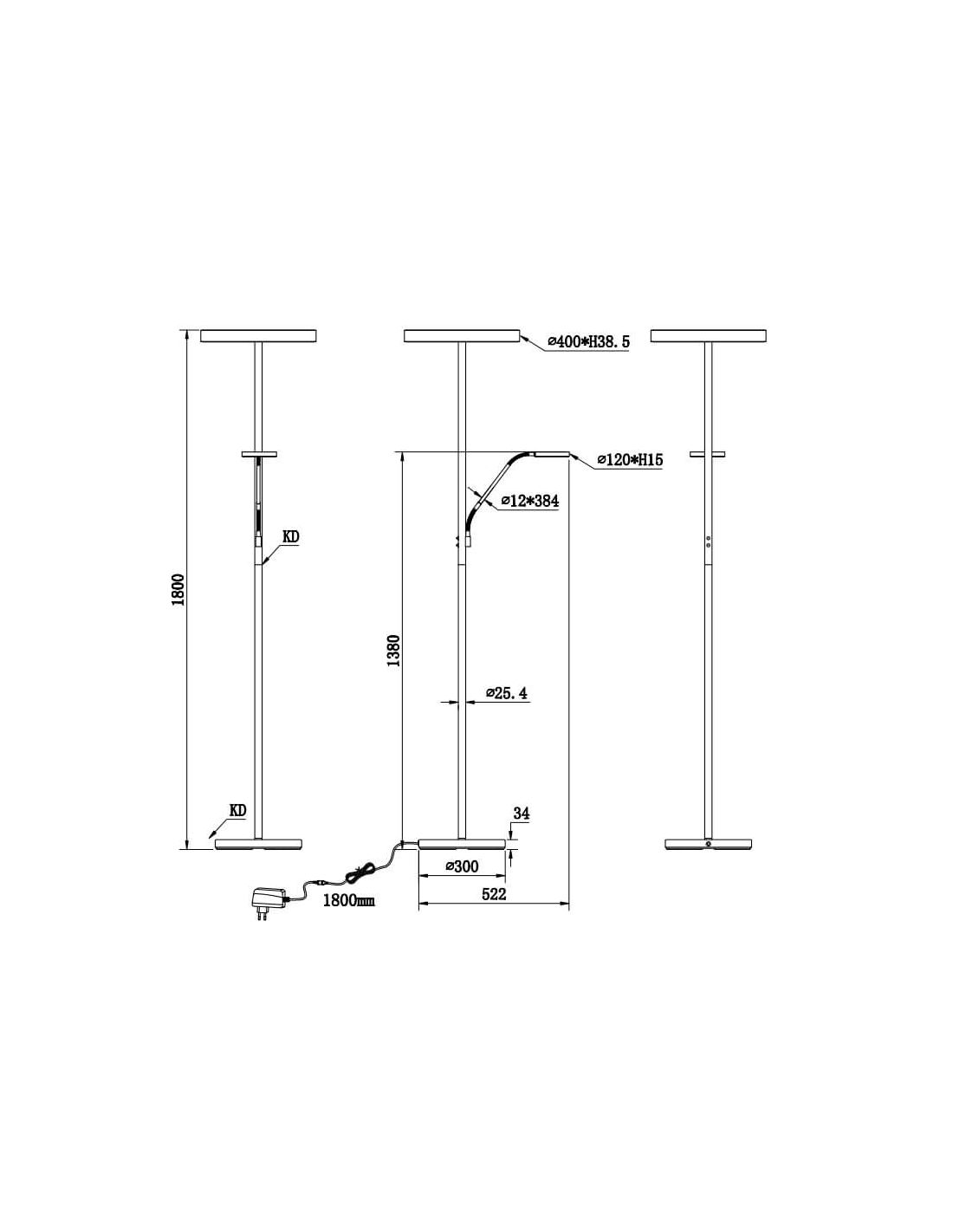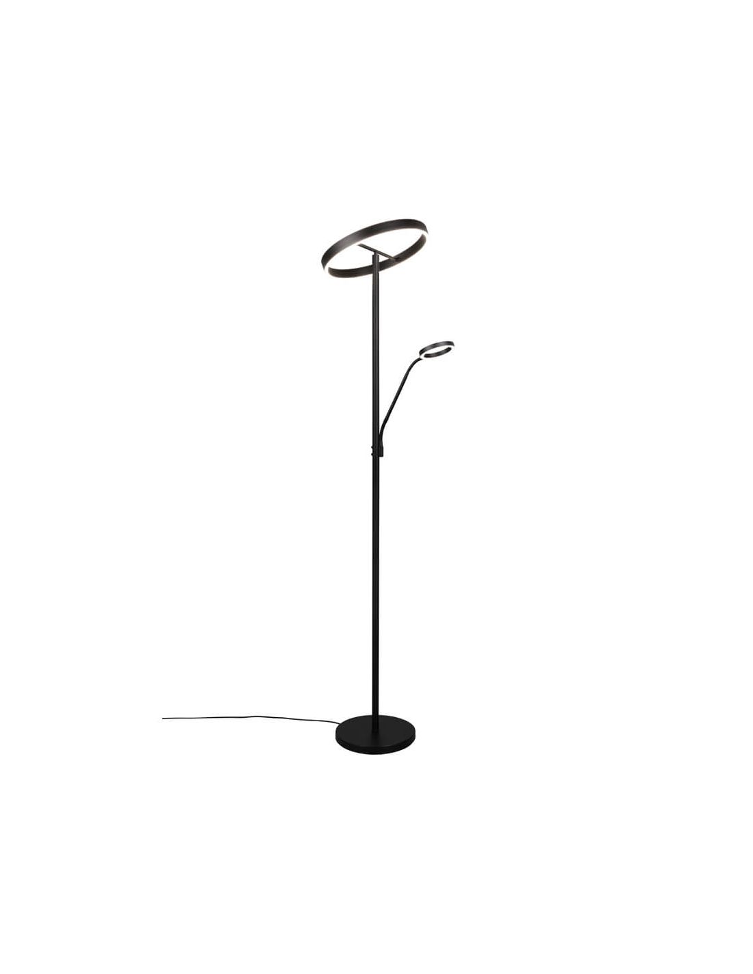 LED-Stehlampe WILLIS in Schwarz mit modernem Design und erweiterten Beleuchtungsoptionen. Dimmbarer Kopf, flexibler Lesearm und Energieeinsparungen mit LED. Ideal für jeden Einrichtungsstil. Bei der oberen Lampe ist die Lichtleistung 39W und 4.600Lm, bei der Lampe des flexiblen Arms ist die Leistung 5,5W und die Lichtintensität 550Lm, bei beiden kann die Lichtfarbe eingestellt werden: 2700K + 3200K + 4000K.