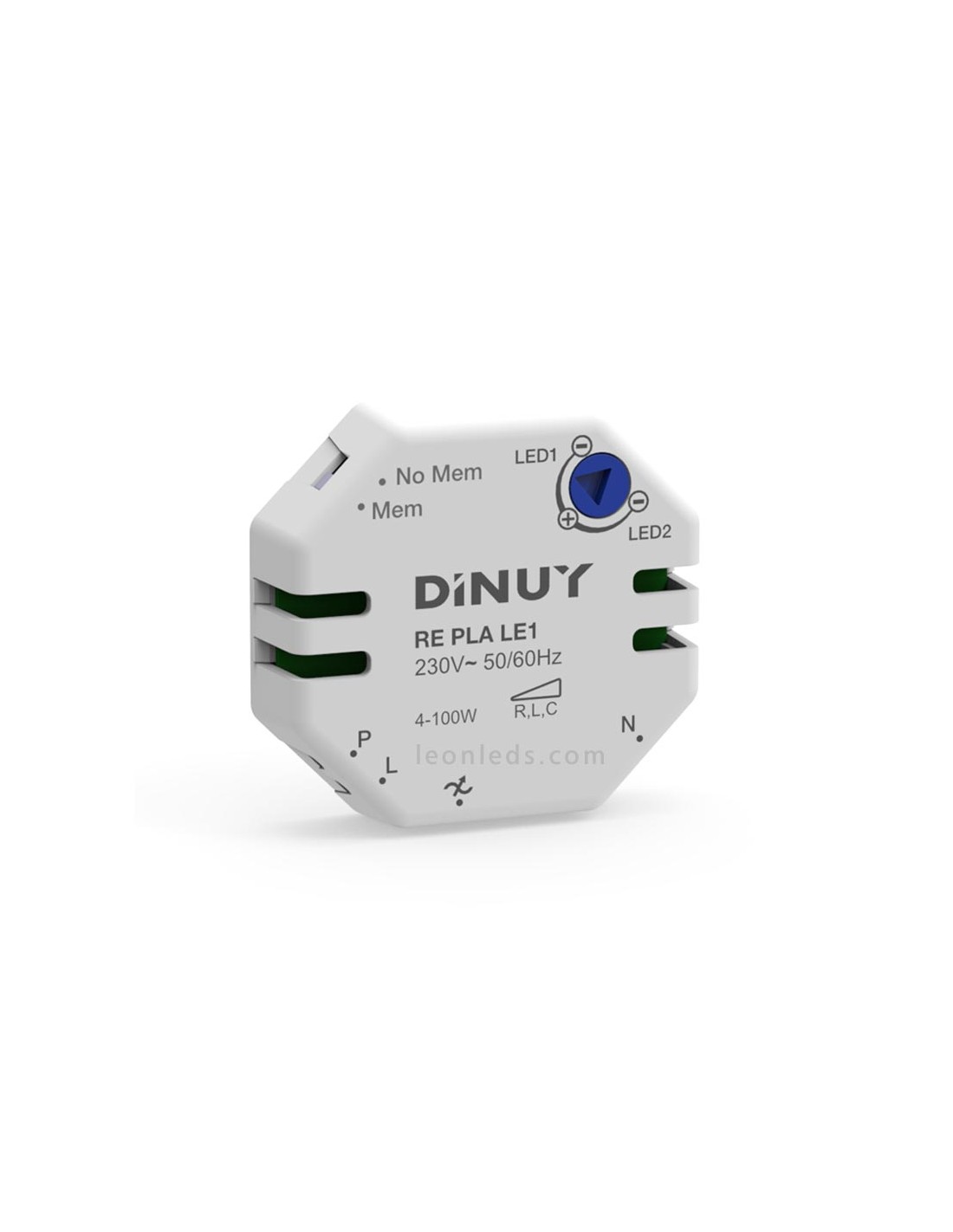 Er ermöglicht die Einstellung des Minimalniveaus (über die blaue Schraube an der Vorderseite der Montageplatte) der Dimmung der Lampen, um Flackern oder ungewolltes Ausschalten bei niedrigen Niveaus zu vermeiden.