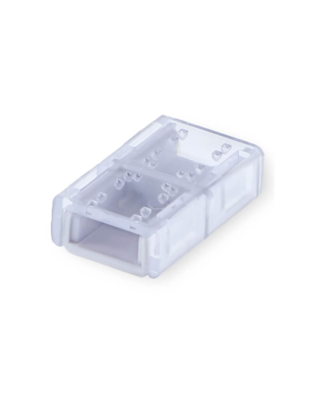 Der doppelte crimpbare Adapter für LED-Streifen 220 V AC COB mit transparenter Ausführung erlaubt sichere, schnelle und professionelle Verbindungen zwischen Abschnitten von LED COB Hochspannungsstreifen. Hergestellt aus robusten und isolierenden Materialien, garantiert er eine zuverlässige elektrische Verbindung ohne Löten.